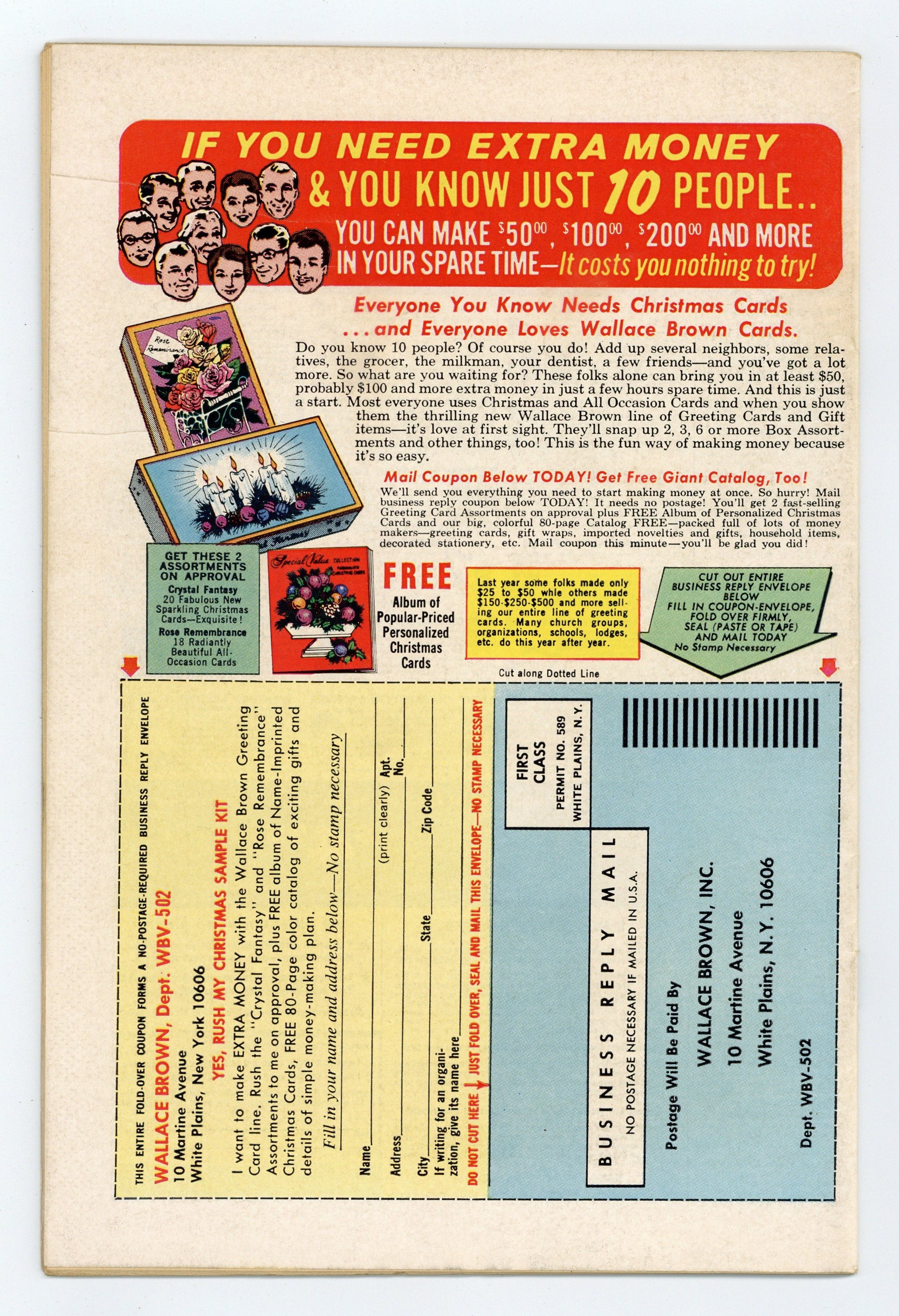 Ends Jan 26 9:48 PM CST Bid History 9 bids Current Bid $28 Your Secret Max Bid If you'd like to bid, please log in or register. Cover pencils by John Buscema. The Torch is Passed...!, script by Roy Thomas and Stan Lee, pencils by George Tuska and Steve Ditko, inks by John Tartaglione; The X-Men attend Professor X's funeral and are surprised when Quicksilver shows up; Returning to the mansion, the X-Men are greeted by a posthumous message from Xavier passing the torch on to his students; Quicksilver returns to Magneto's lair and is plagied with doubt about leaving the Avengers to rejoin his old master but fears for his sister's health; The X-Men lay a trap and attack Magneto and his Brotherhood but the bad guys quickly gain the upper hand; reprinted from issue 42. Journey's End, script by Stan Lee, art by Steve Ditko; A crook ends up killing a night watchman and flees into the past in a time machine where he has a violent encounter with the machine's creator; reprinted from Amazing Adult Fantasy #7. 36 pgs. $0.25. Cover price $0.25.