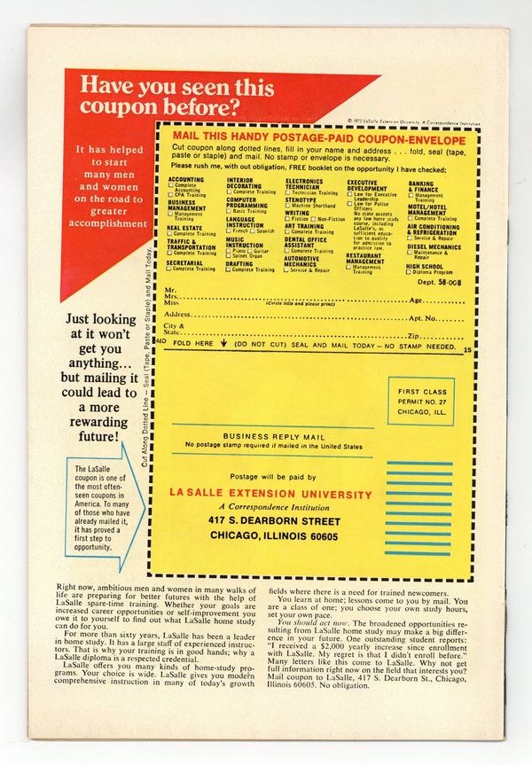 Starts Feb 2 Cover pencils by Gene Colan, inks by Sam Grainger. Cry Coward!, script by Roy Thomas, pencils by Gene Colan, inks by Syd Shores; Plagued by random phobias, DD has to overcome his weaknesses and take down a new Mr. Fear. Letter to the editor from comics writer Martin Pasko. 36 pgs. Cover price $0.15. Cover price $0.15.