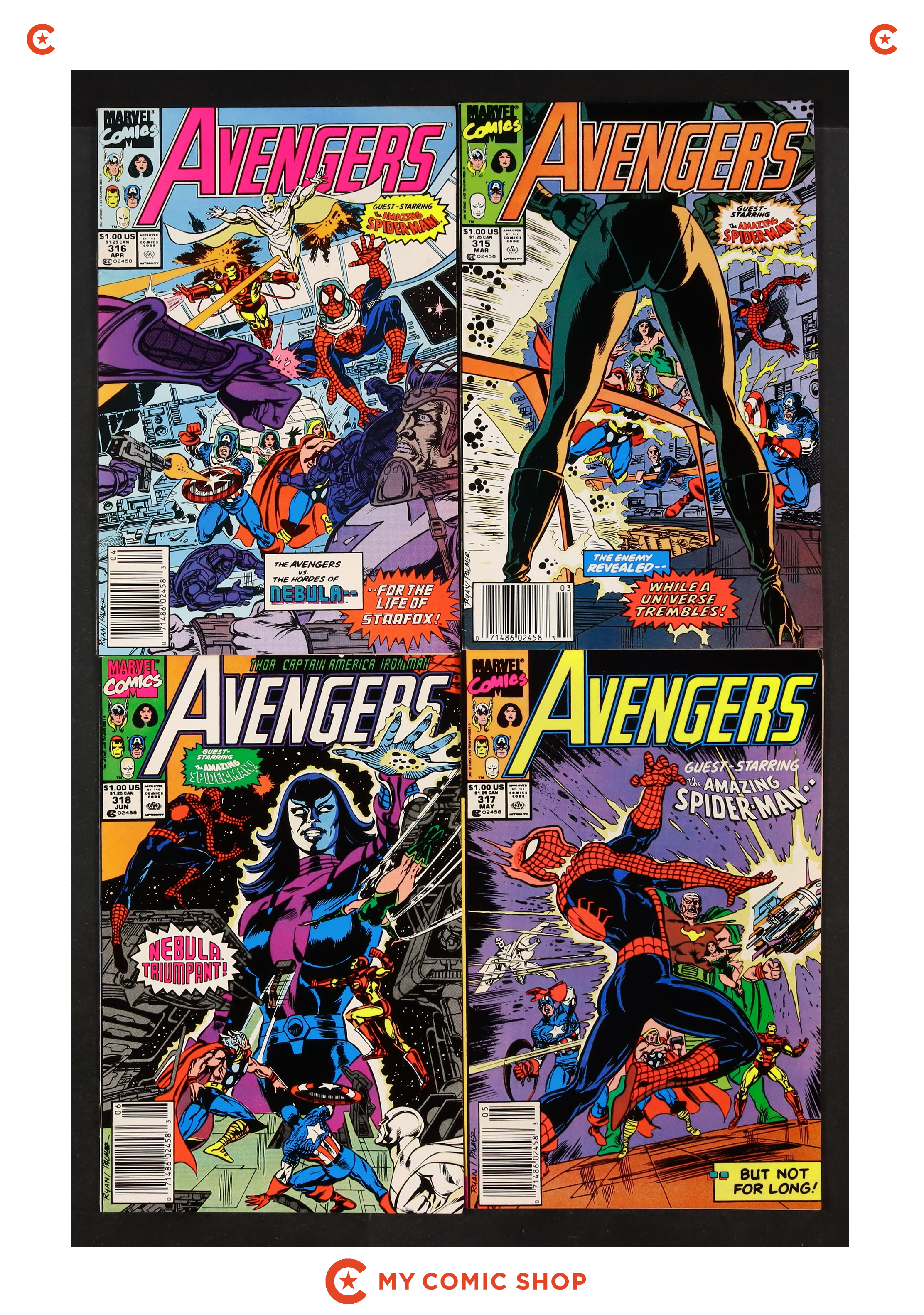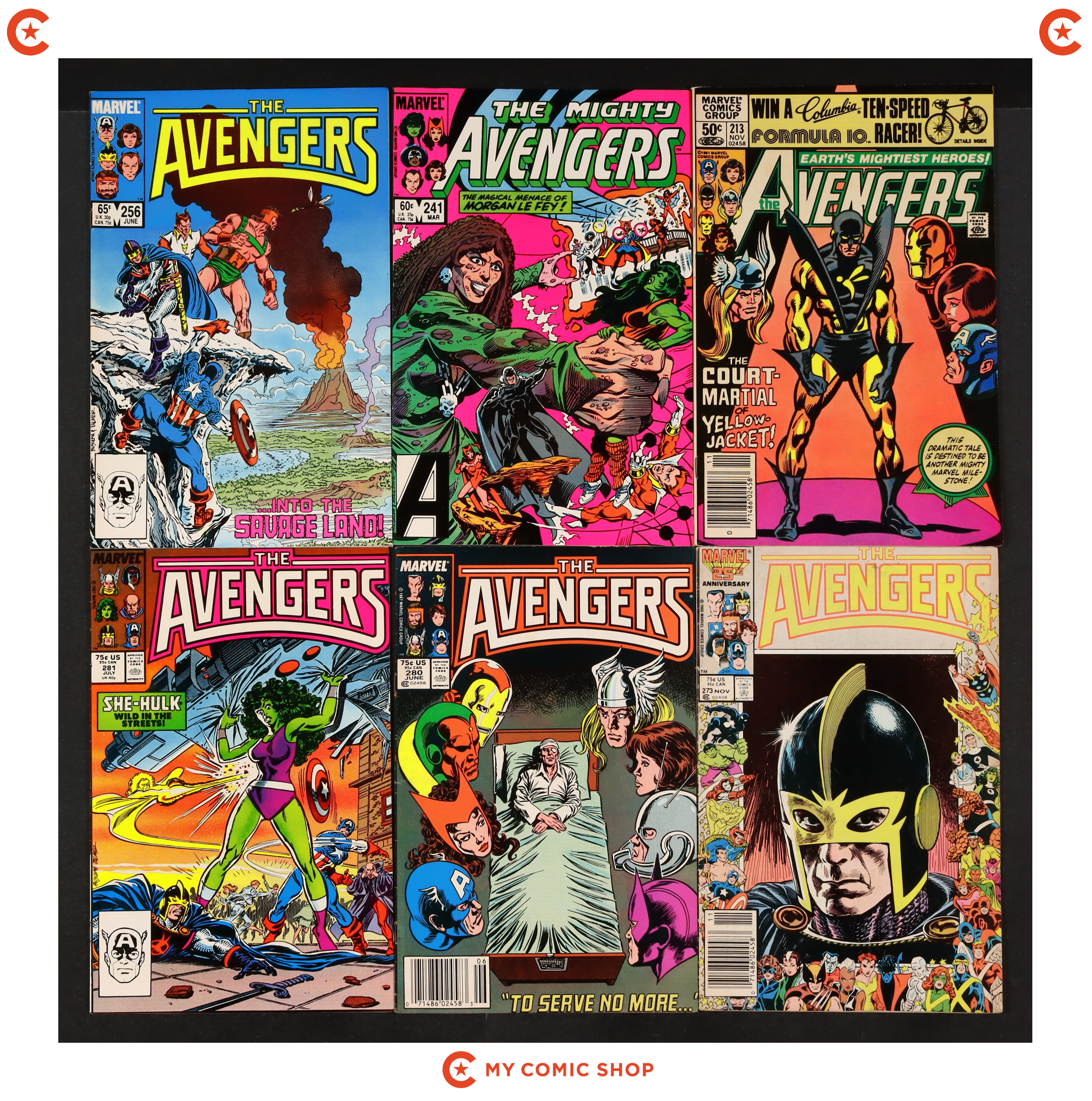 Issues 213, 241, 256, 273, 280, 281, 282 of Avengers (1963 1st Series), issues 340D, 346, 350, 400 of Captain America (1968 1st Series), and issue 279 of Iron Man (1968 1st Series). Most will grade in the FN to VF range with #273 of Avengers (1963 1st Series) grading GD.