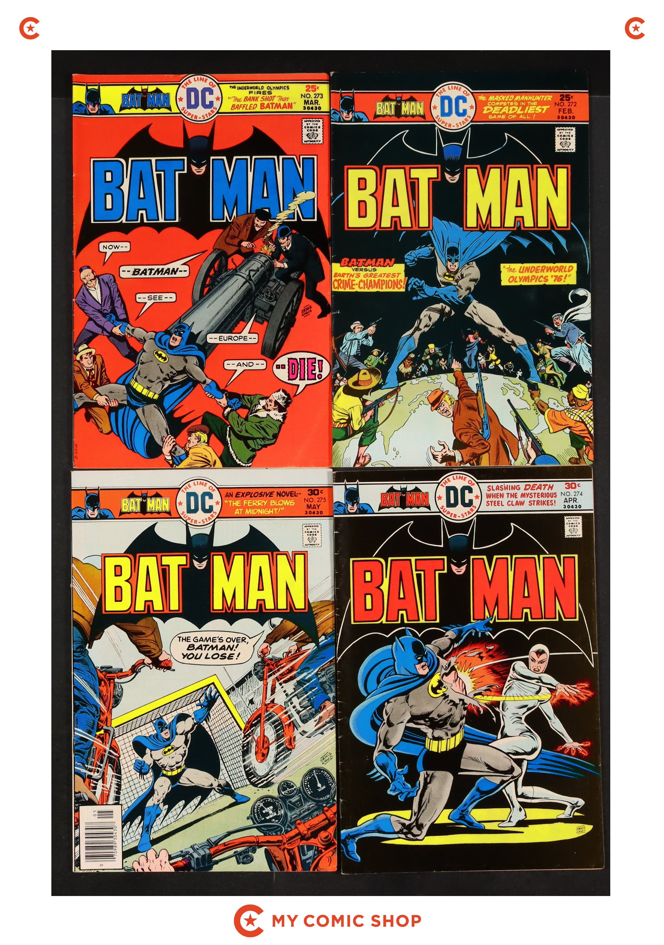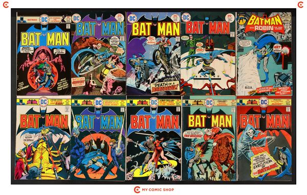 Issues 240, 263-275 of Batman (1940). Most will grade in the VG to FN range.