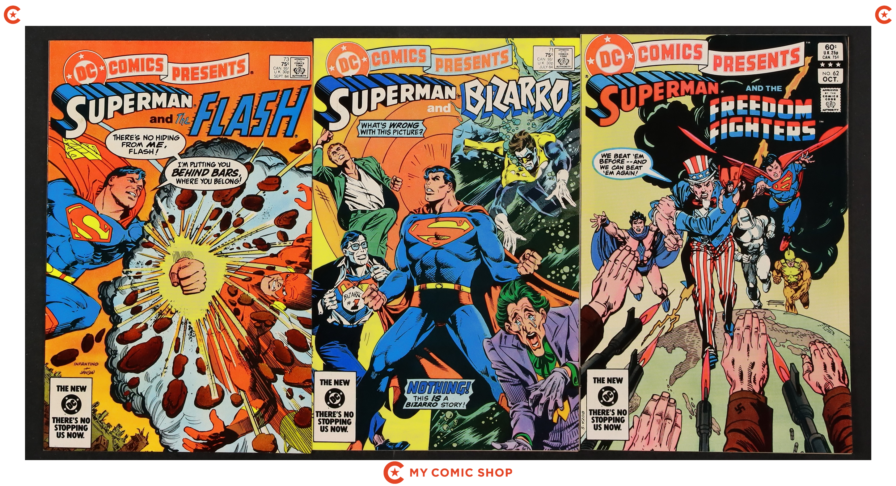 Issues 13-15, 19-21, 64, 69 of DC Comics Presents (1978 DC). Most will grade in the FN/VF to VF range.