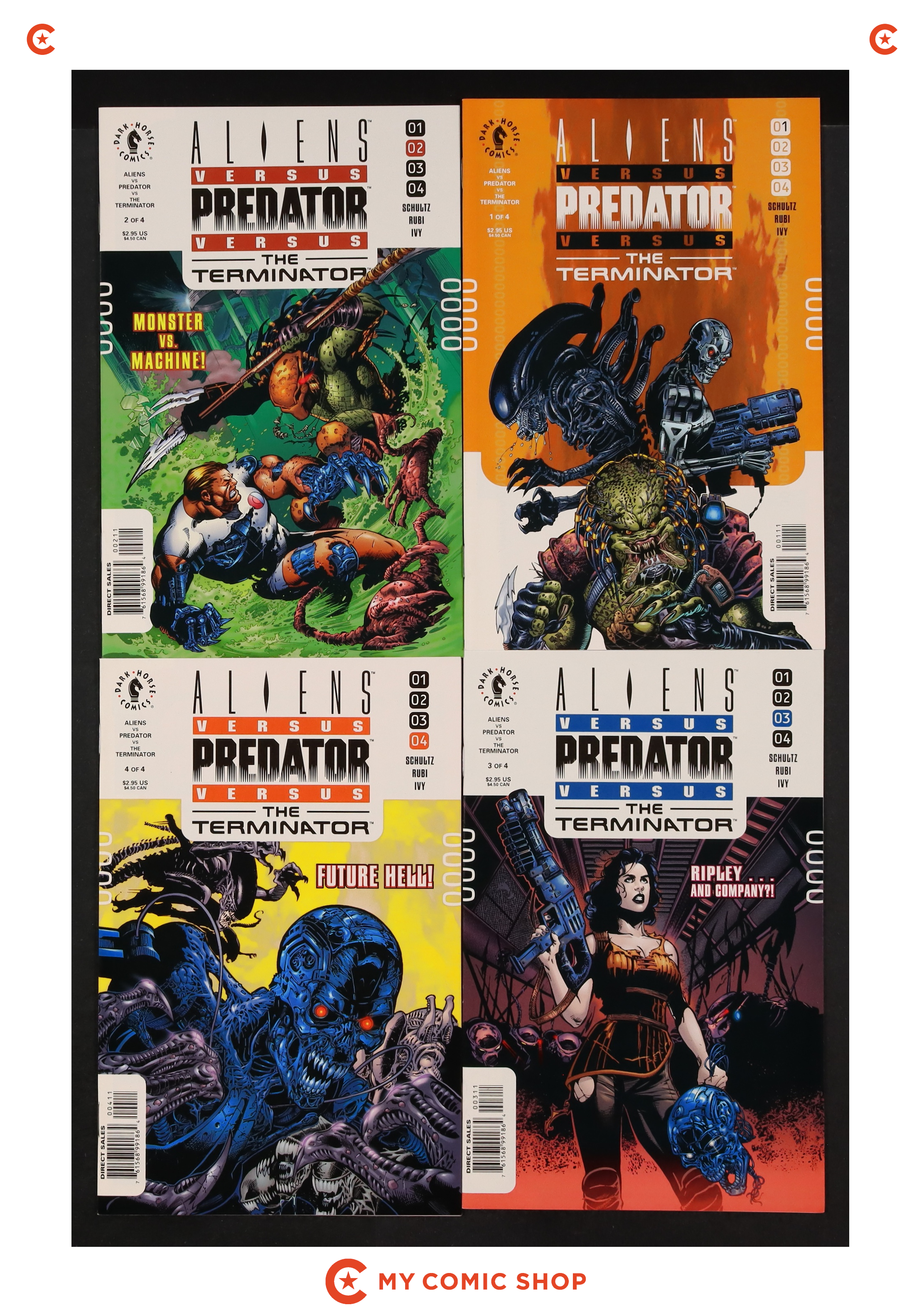 Aliens vs. Predator vs. the Terminator Lot of 4Published 2000 by Dark Horse.Aliens vs. Predator vs. the Terminator Lot of 4