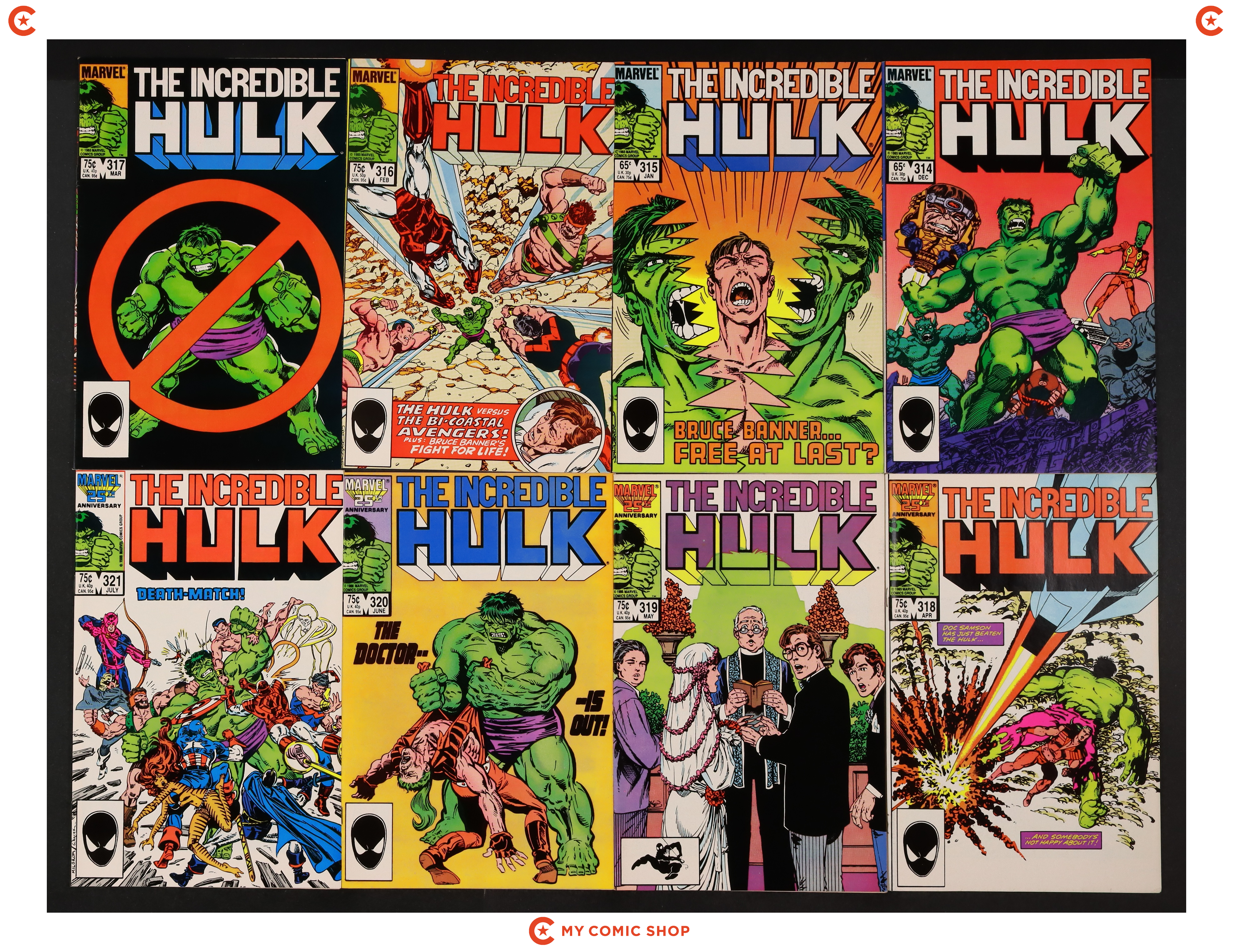 Issues 314-321, 322N, 323, and 324 of Incredible Hulk (1962 Marvel 1st Series). Most will grade in the VF range with a couple grading FN.