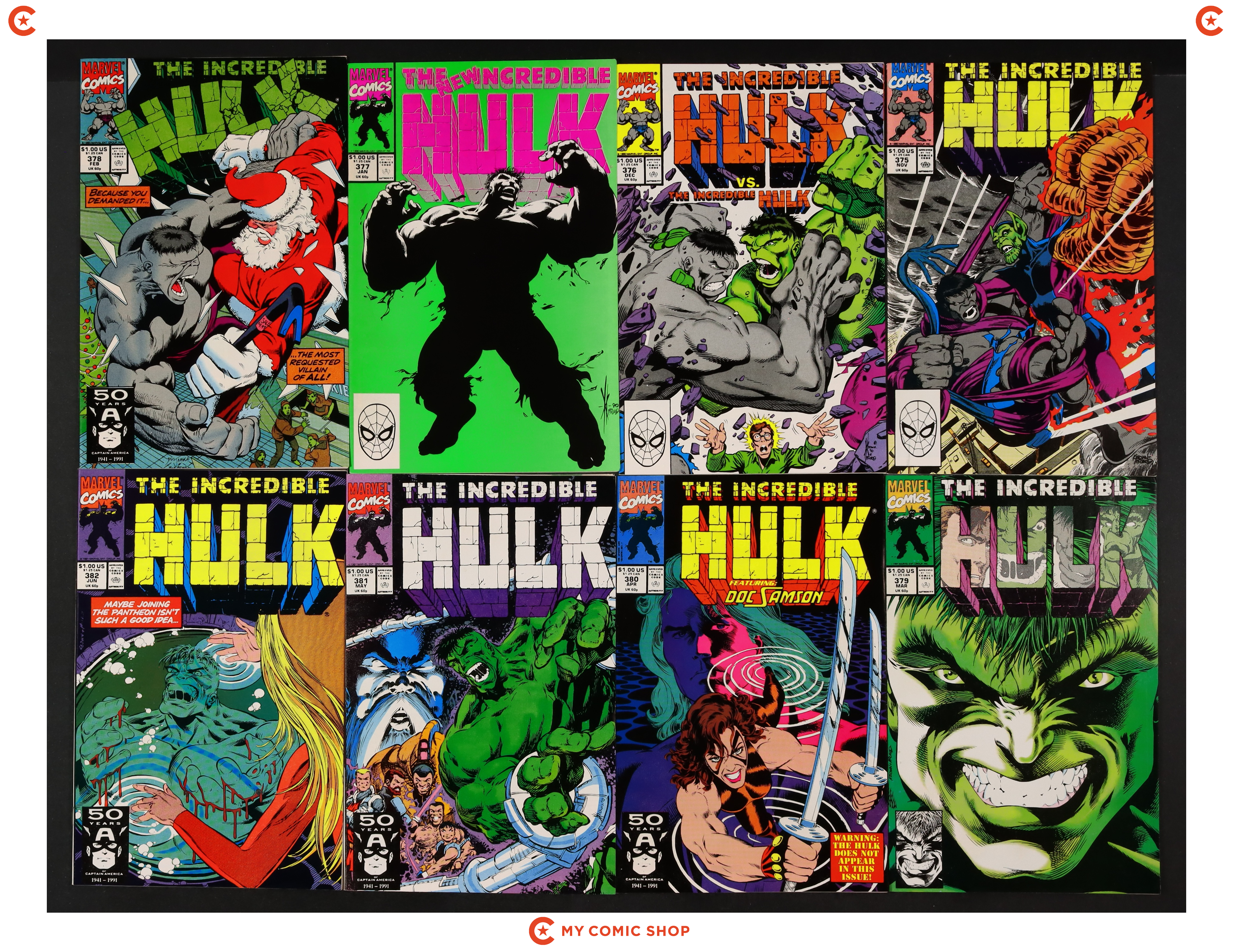 Issues 375, 376, 377A, and 378-385 of Incredible Hulk (1962 Marvel 1st Series). Most will grade in the VF range.