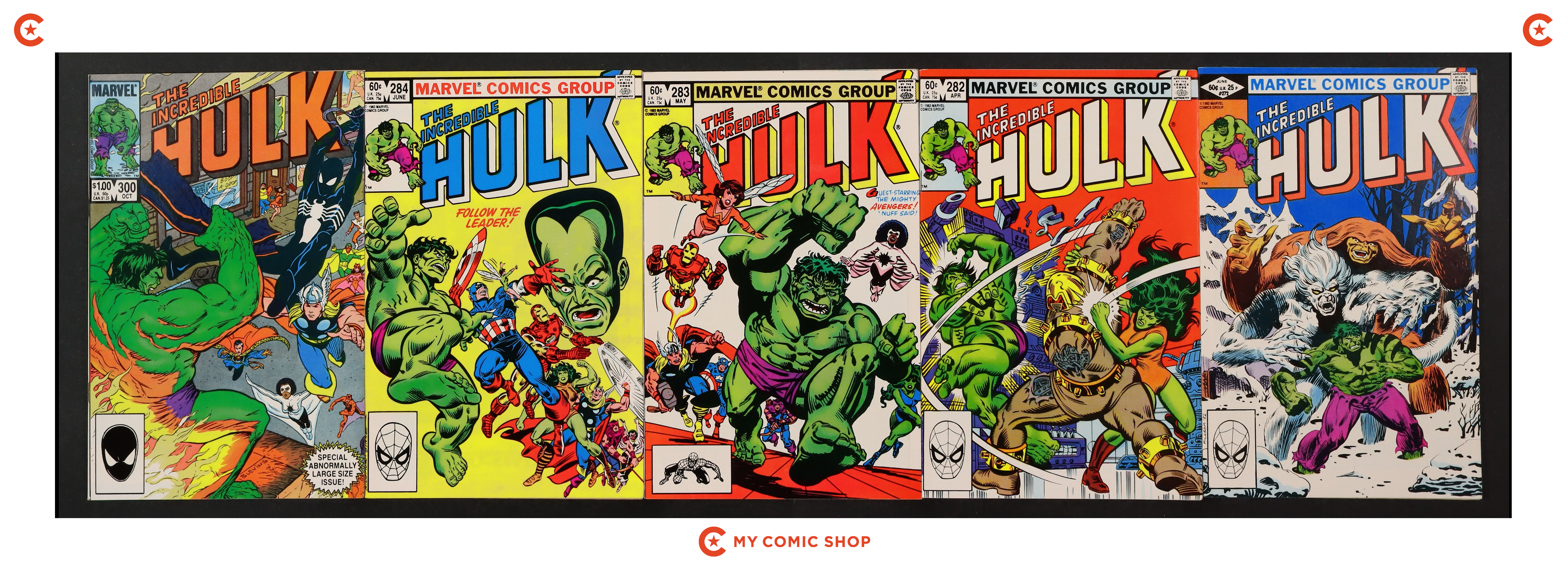 Issues 272, 282-284, and 300 of Incredible Hulk (1962 Marvel 1st Series). Most will grade in the VF range.