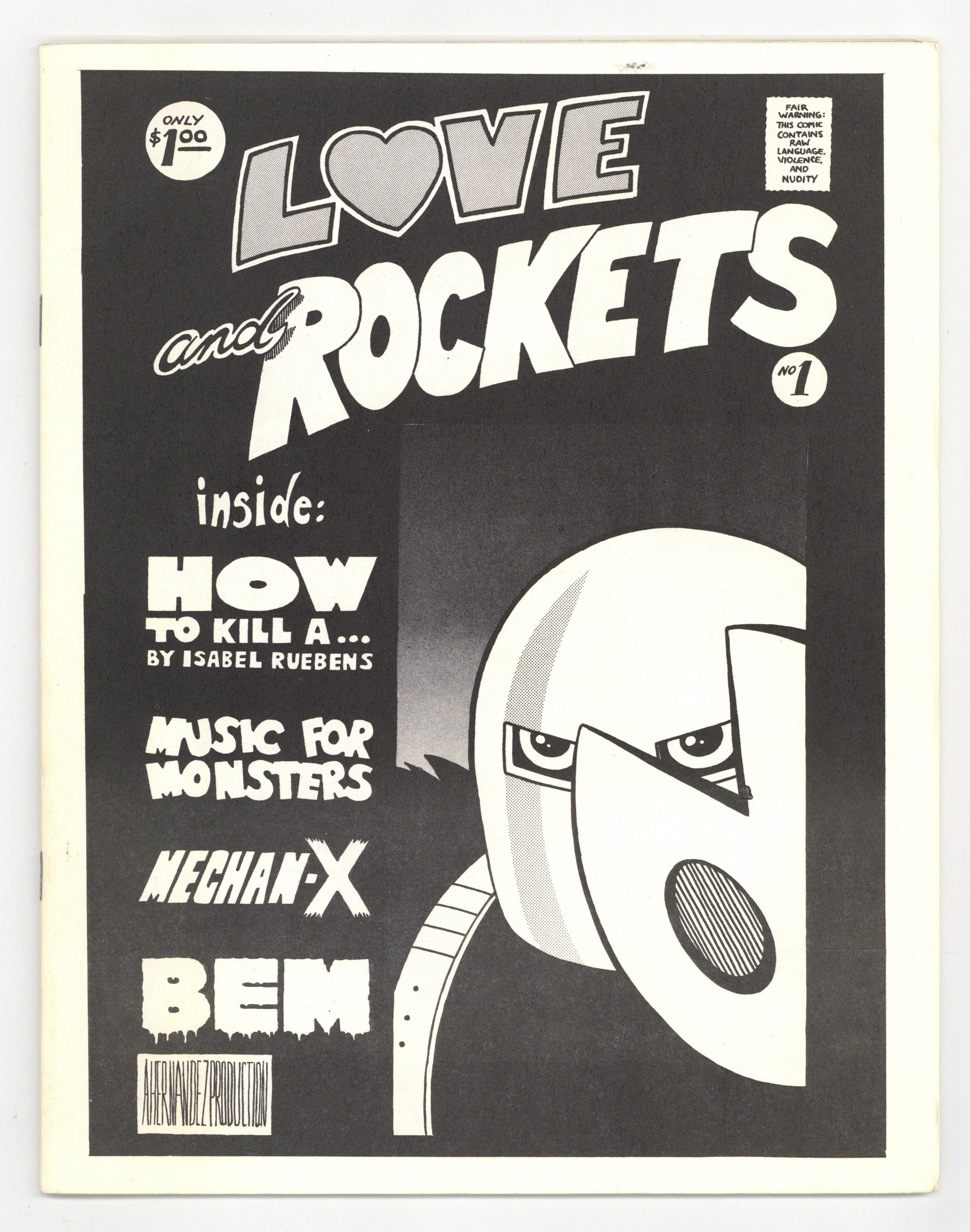Starts Jan 3 The original Love and Rockets fanzine that preceded the Fantagraphics magazines, which reprinted much of this material. 1st appearance of Maggie, Hopey, and Penny Century. "BEM" by Gilbert Hernandez, Mechan-X by Haime Hernandez, "How To Kill a" by Jaime, and an untitled story by Gilbert. 8.5-in. x 11-in.; black and white; 32 pages on good quality white paper. Cover price $1.00.