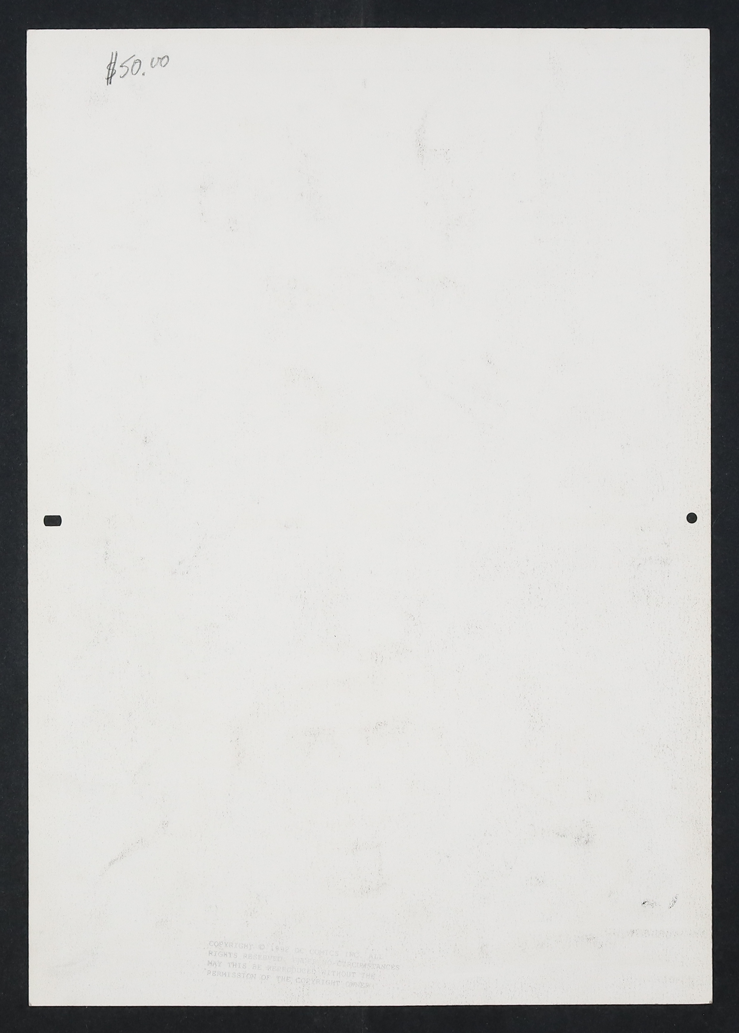 A great action page from this Lady Blackhawk spotlight story! Mourning the recent death of Big Barda in her own way (getting wasted at a bar, starting a fight, and then hijacking a cab in Metropolis to take her to California), Zinda and her unwilling chauffeur are suddenly attacked by False Face and White Star. The highlight here is the third panel with a great image of Lady Blackhawk in a stone cold western gunfighter pose just before she effortlessly hits the cab's gas tank, buying herself some time to escape. Pencil and ink on DC Comics art board. 11 1/2" x 17".