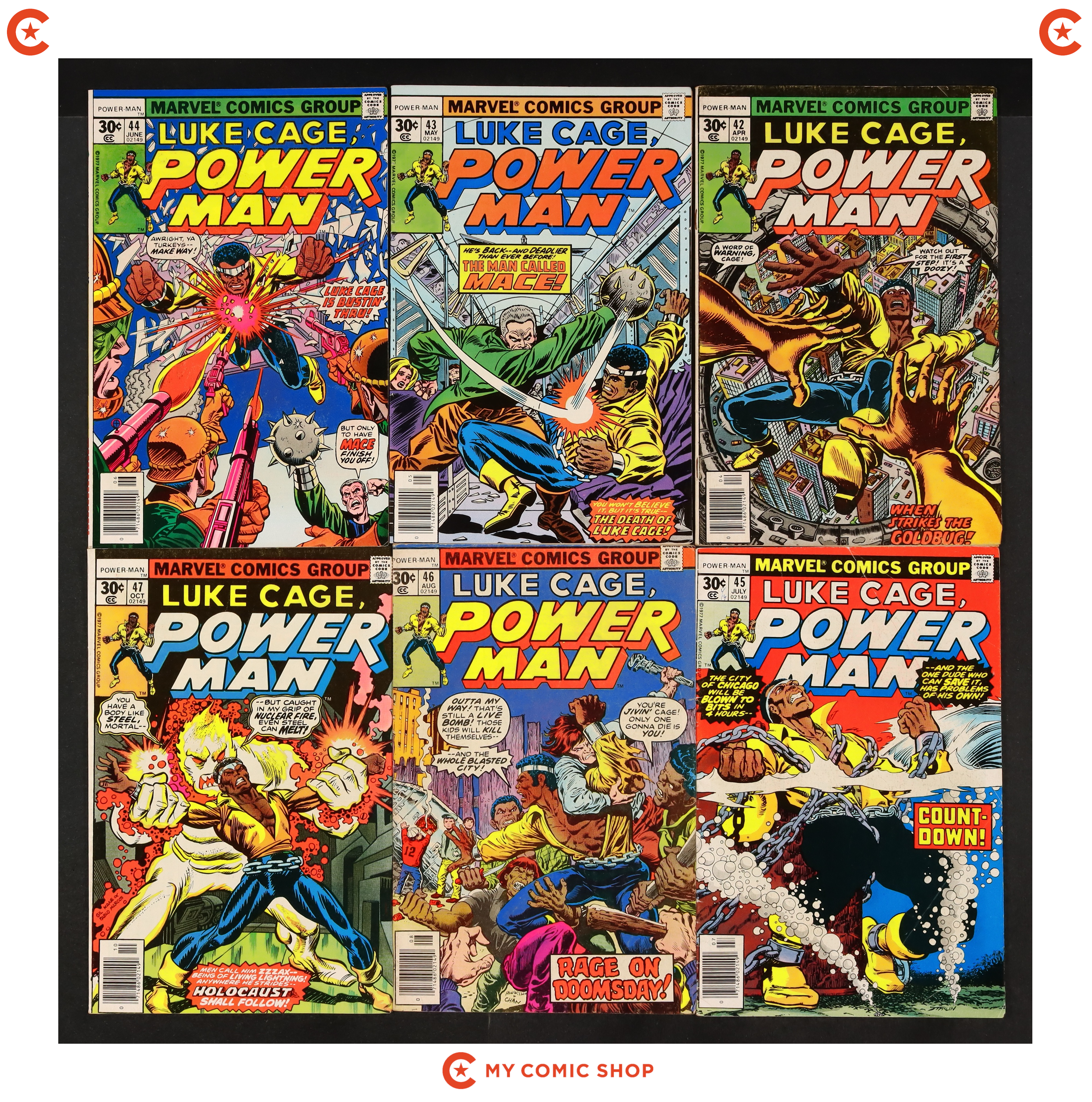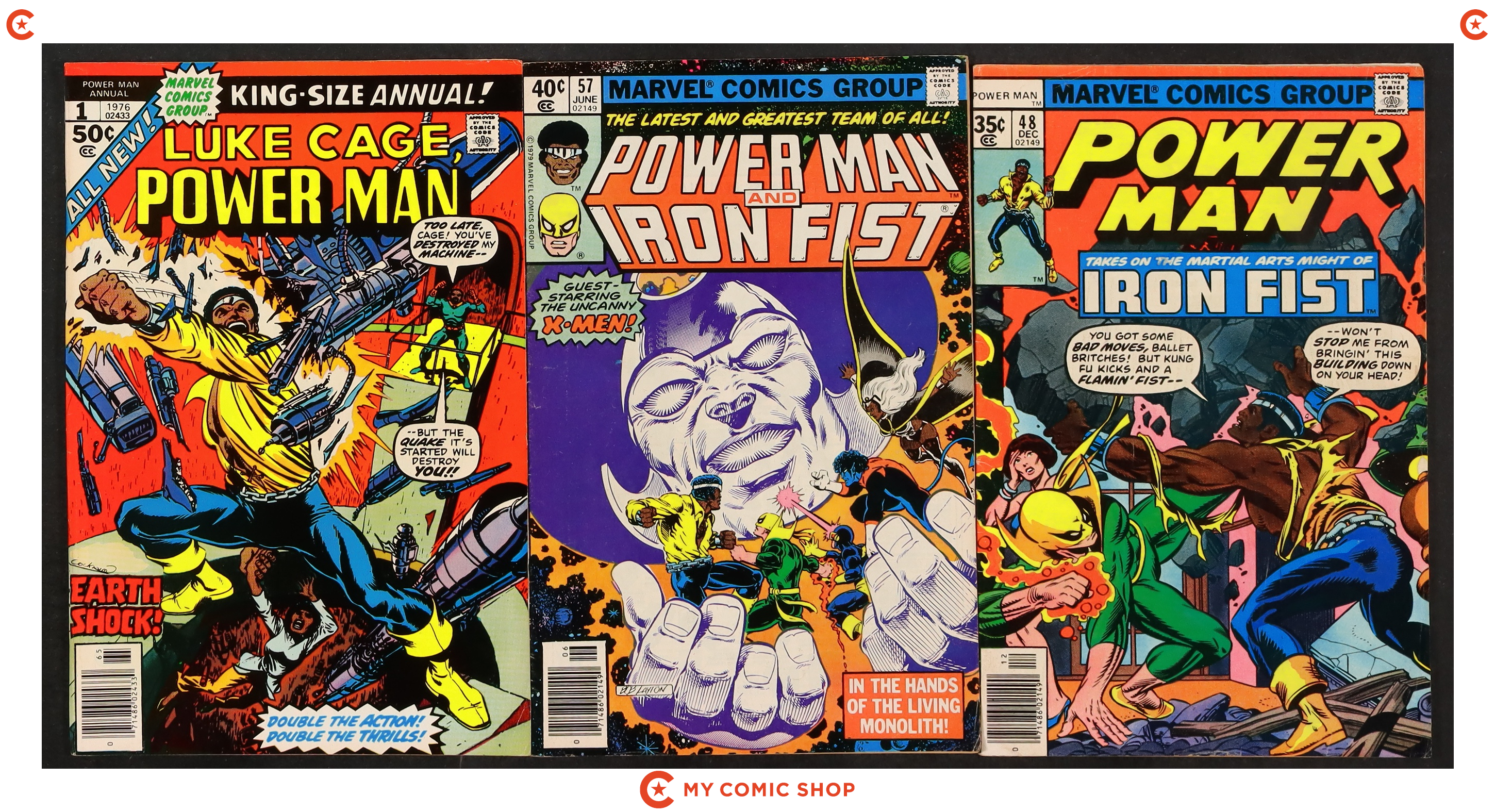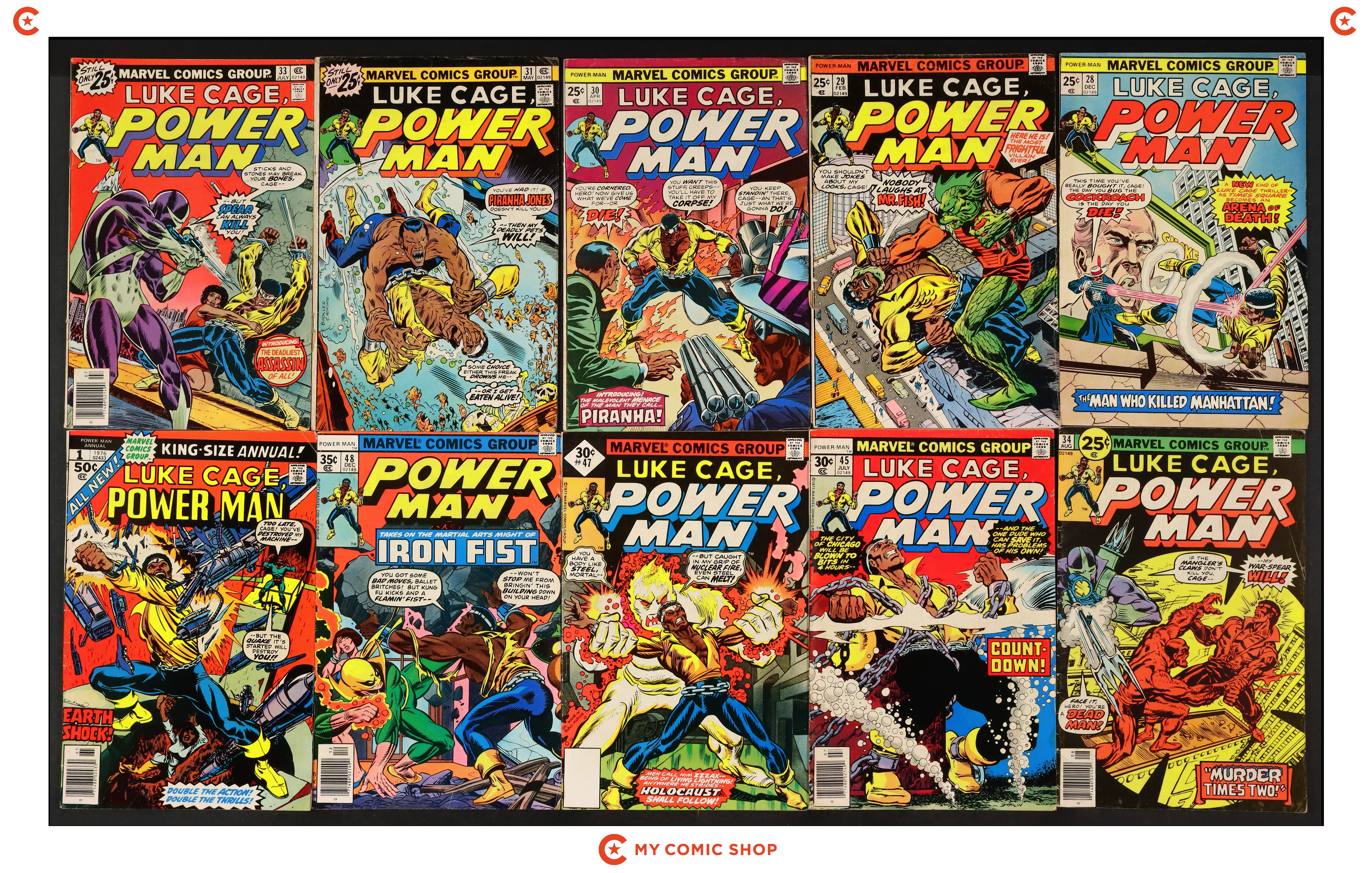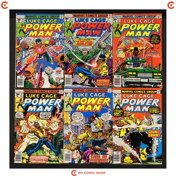 Issues 42-48 and 57 of Power Man and Iron Fist (1972 Hero for Hire); and 1 of Power Man and Iron Fist (1972 Hero for Hire) Annual. Most will grade in the VG range with a couple grading FN.