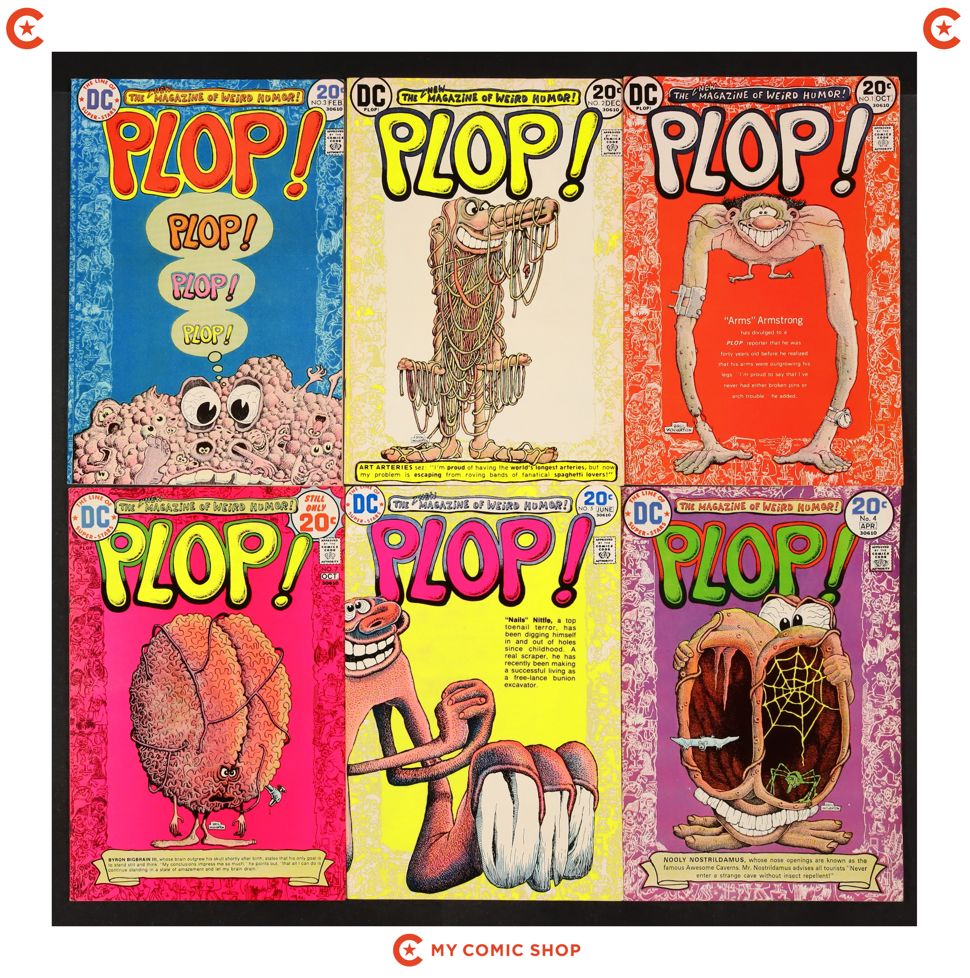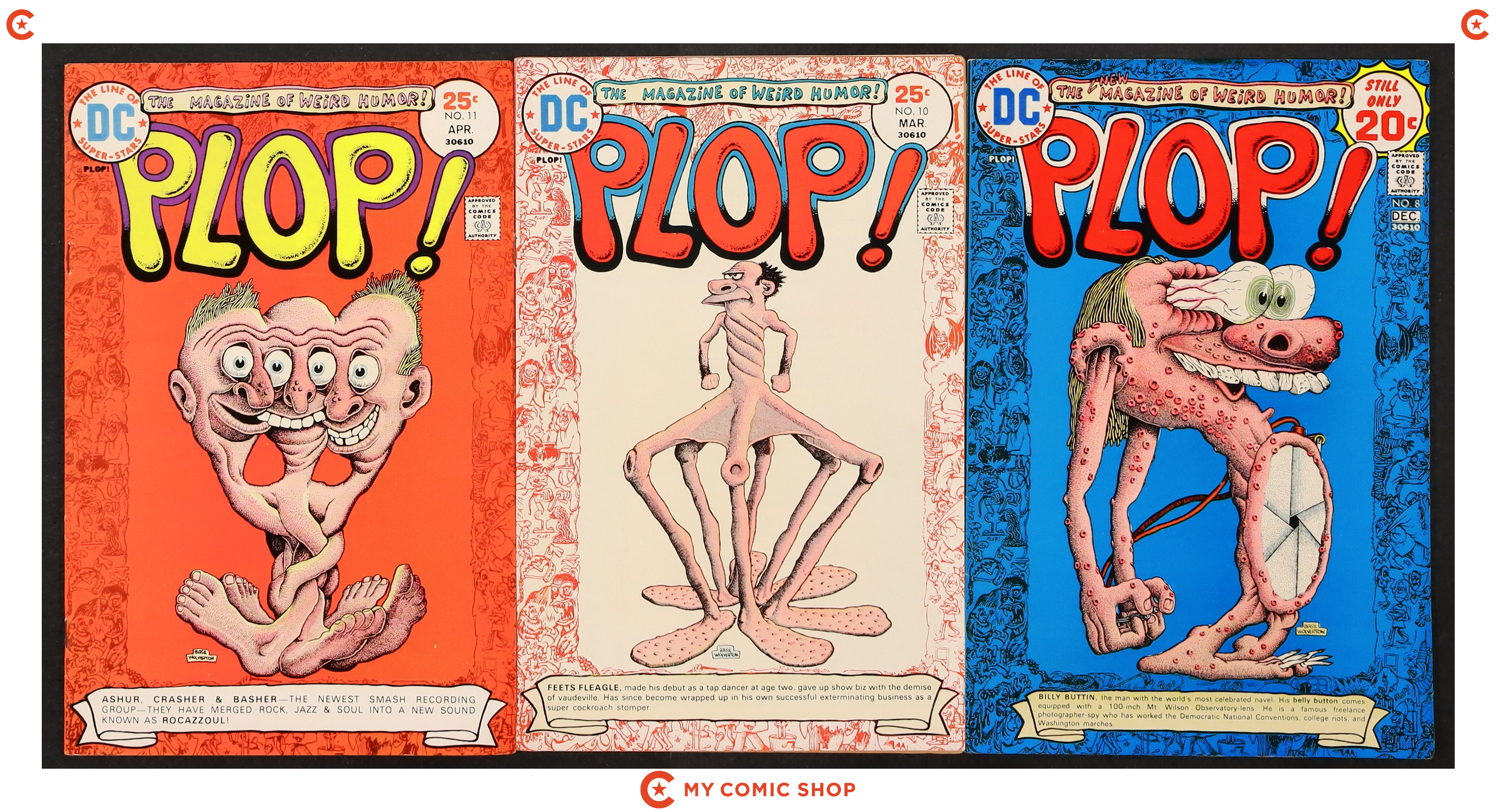 Issues 1-5, 7, 8, 10, and 11 of Plop (1973). Most will grade in the FN to VG range.