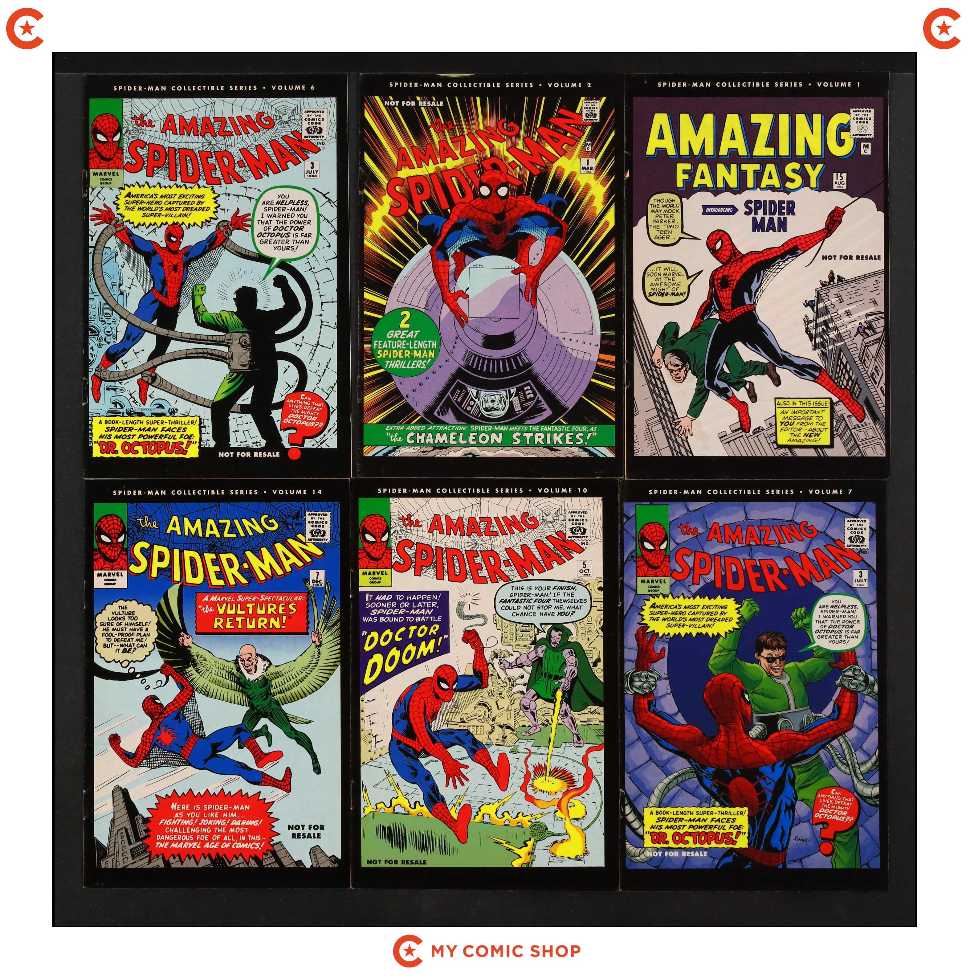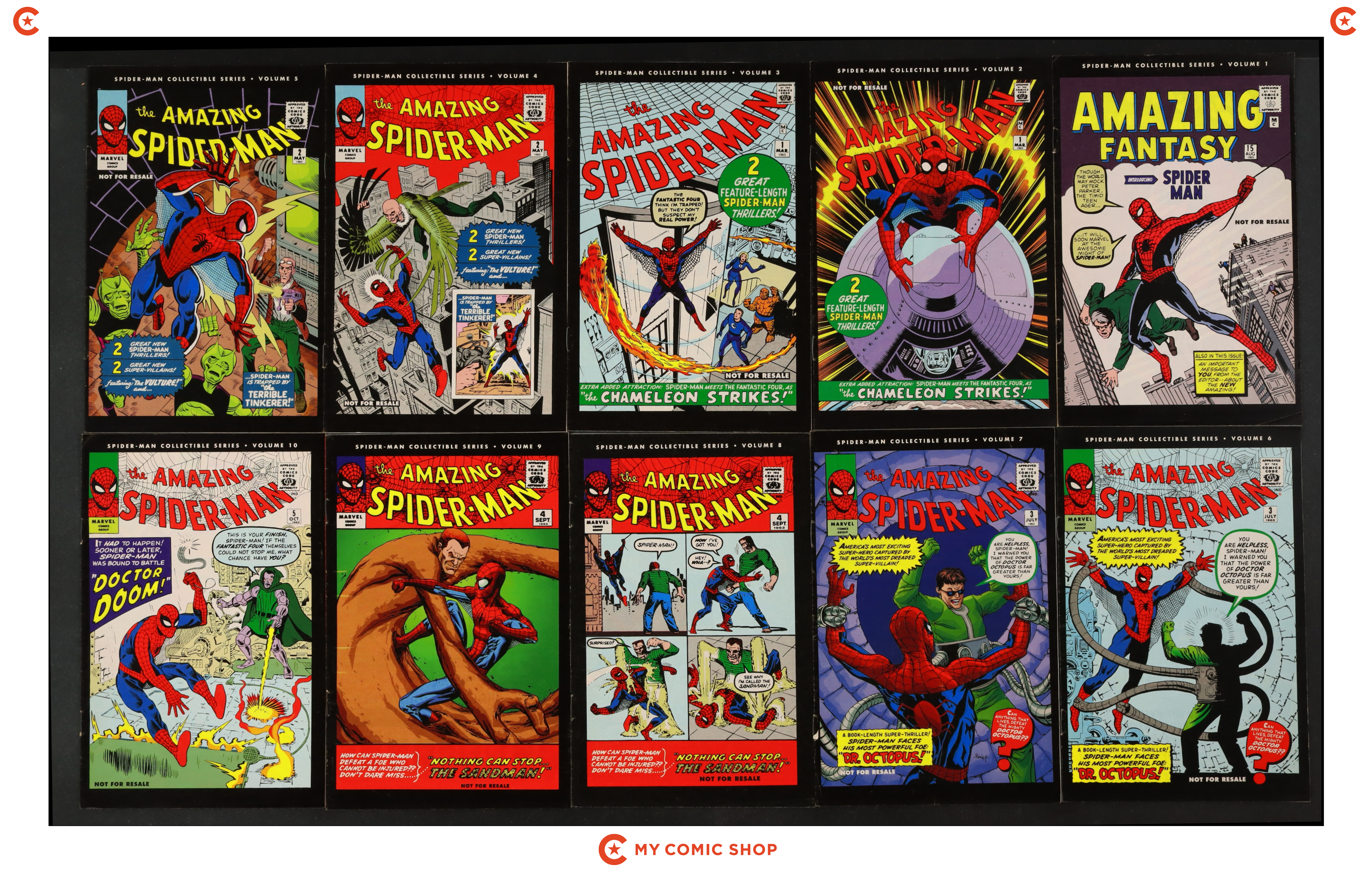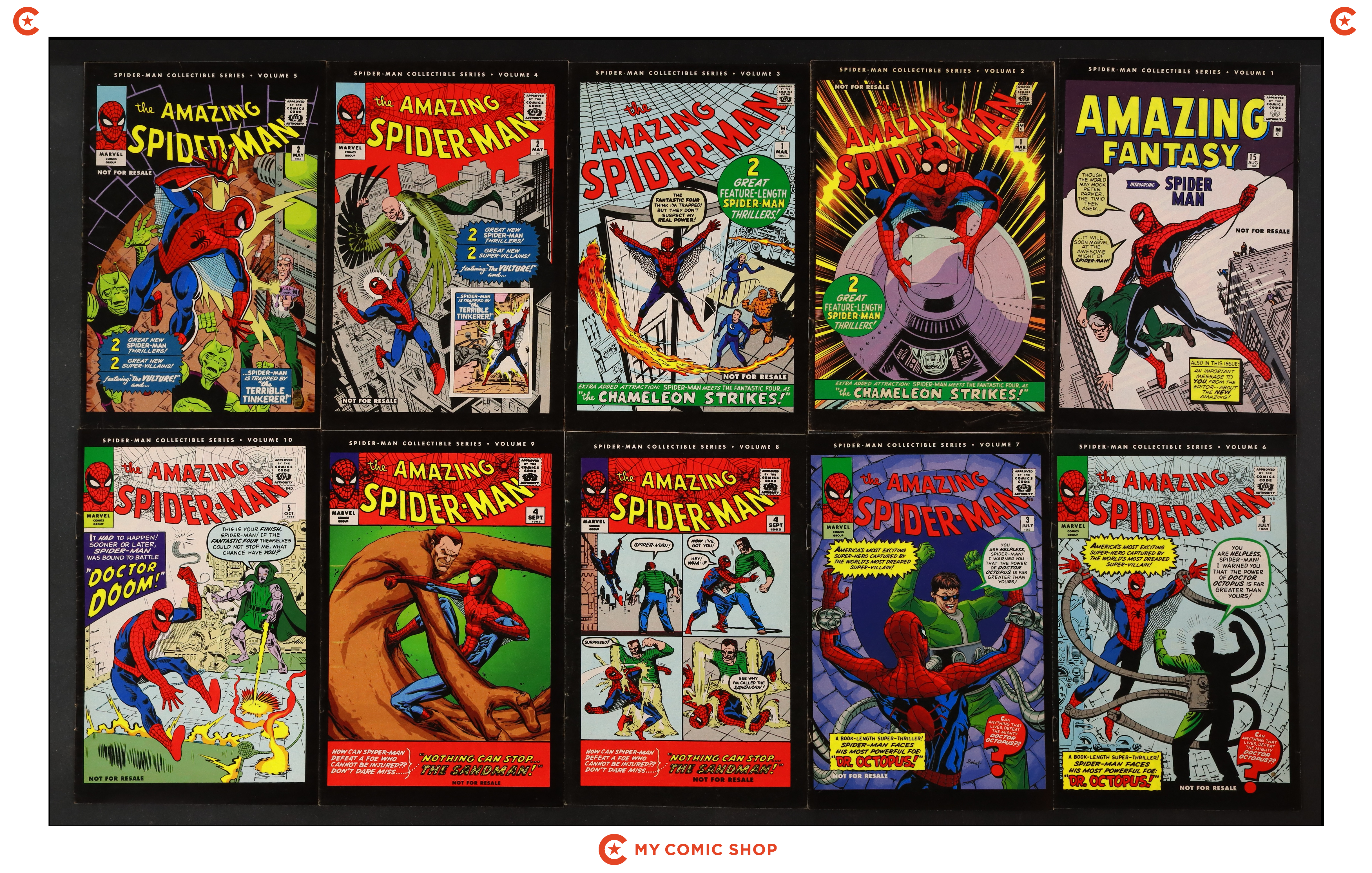 Issues 1A and 2-10 of Spider-Man Collectible Series (2006). Most will grade in the FN range with a few grading VG.
