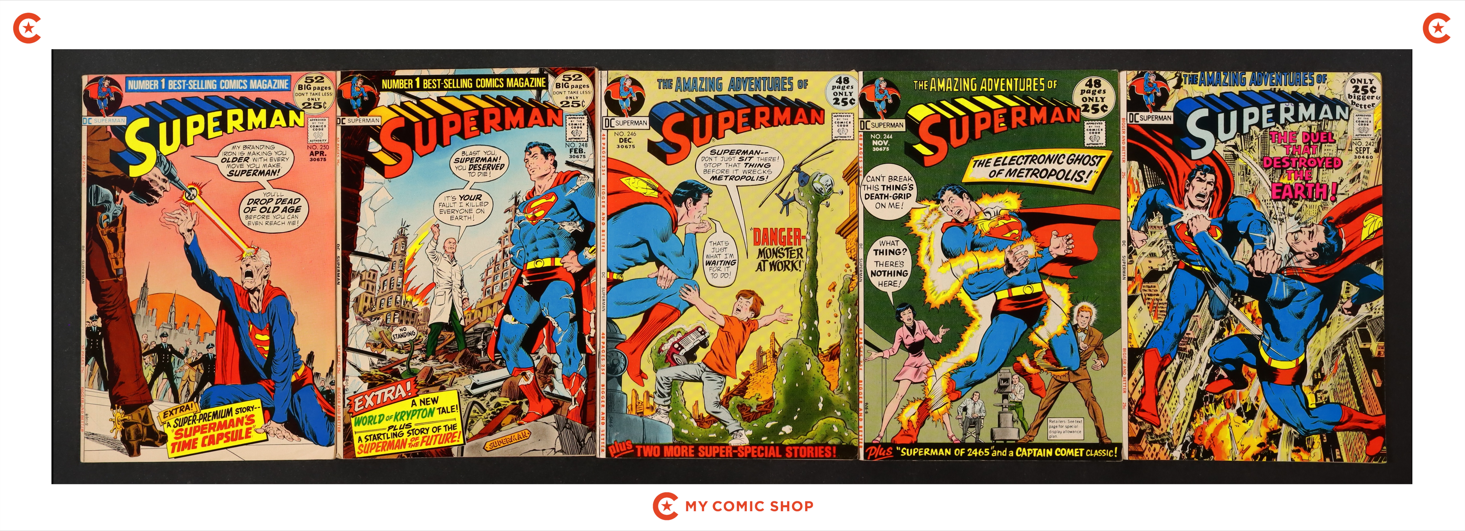 Issues 242, 244, 246, 248, 250 of Superman (1939 1st Series). Most will grade in the VG/FN to FN range.