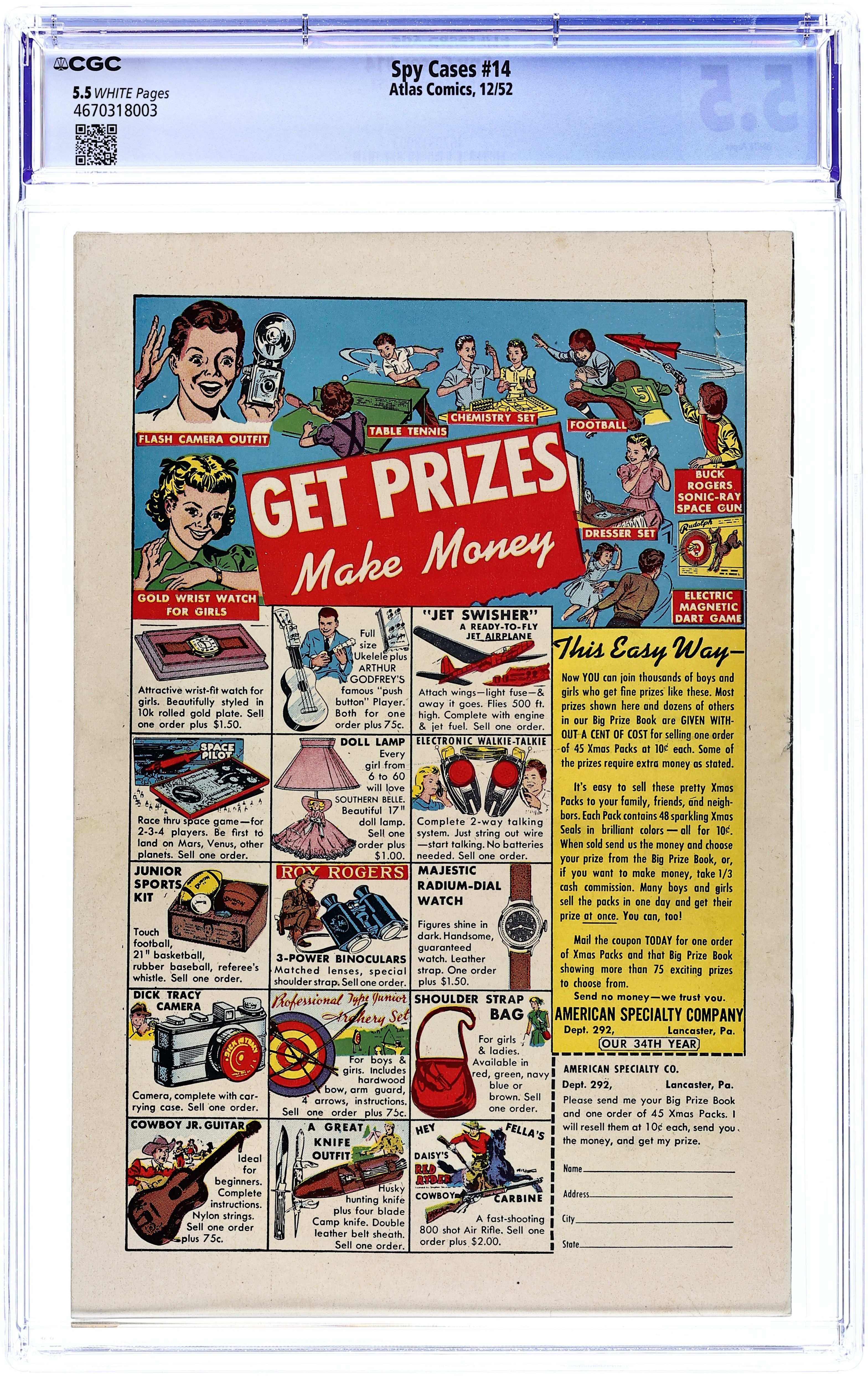 Published Dec 1952 by Marvel/Atlas.Spy Cases (1950) 14 CGC 5.5