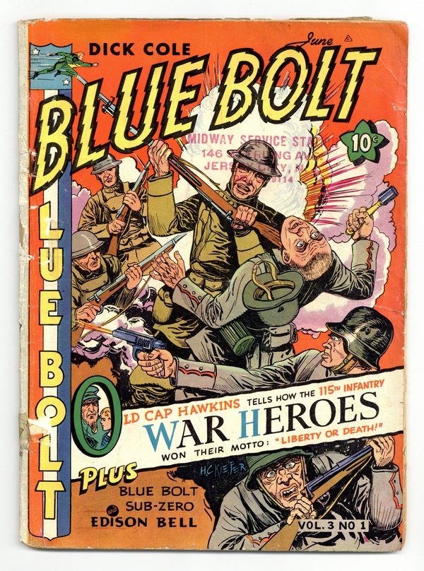 Published Jun 1942 by Funnies, Inc..Blue Bolt (1940-1949) Vol. 3 #1 PR 0.5