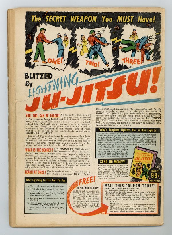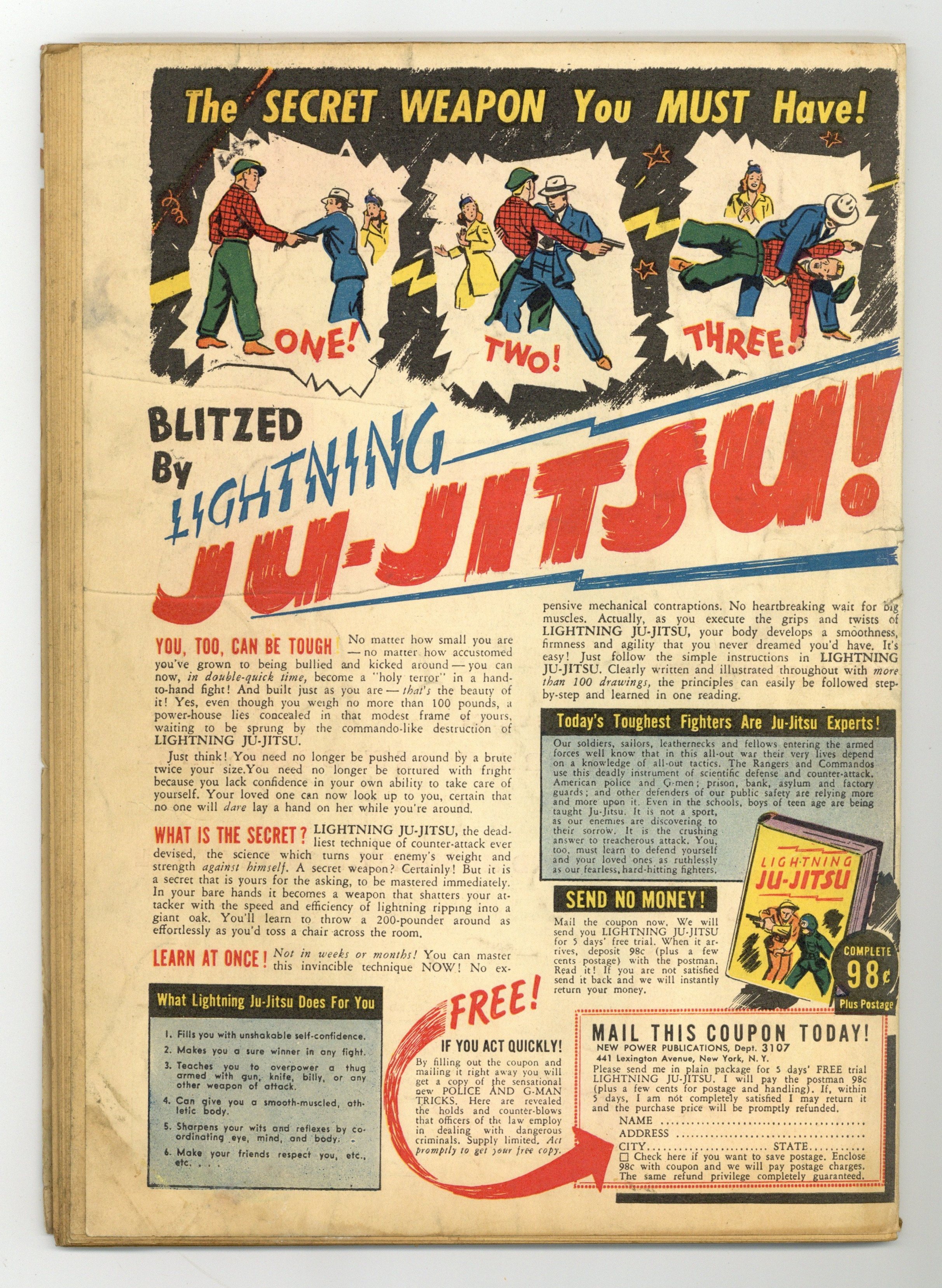 Starts Jan 3 Cover by Art Saaf. Edited by Jean M. Press. Stories and art by Art Saaf, Jean Levander, Graham Ingels, Saul Rosen and Lee Elias. Tales of adventure from pioneering comics publisher Fiction House. Professor Broussard and crew seek The Dungeon Dweller of Horror House; Early good-girl art as Glory goes undercover in a shipyard to find a saboteur; The Commando Rangers are aided by a saint from antiquity while taking refuge in an old church. Cover by Art Saaf hints at the good-girl art to come in future issues. U.S. Rangers; Glory Forbes Vigilante; The Werewolf Hunter; Commando Rangers; The Sea Devil; Two-Faced Traitor; Private Elmer Pippin and the Colonel's Daughter; The Phantom Falcons. 56 pages, Full Color. Cover price $0.10.