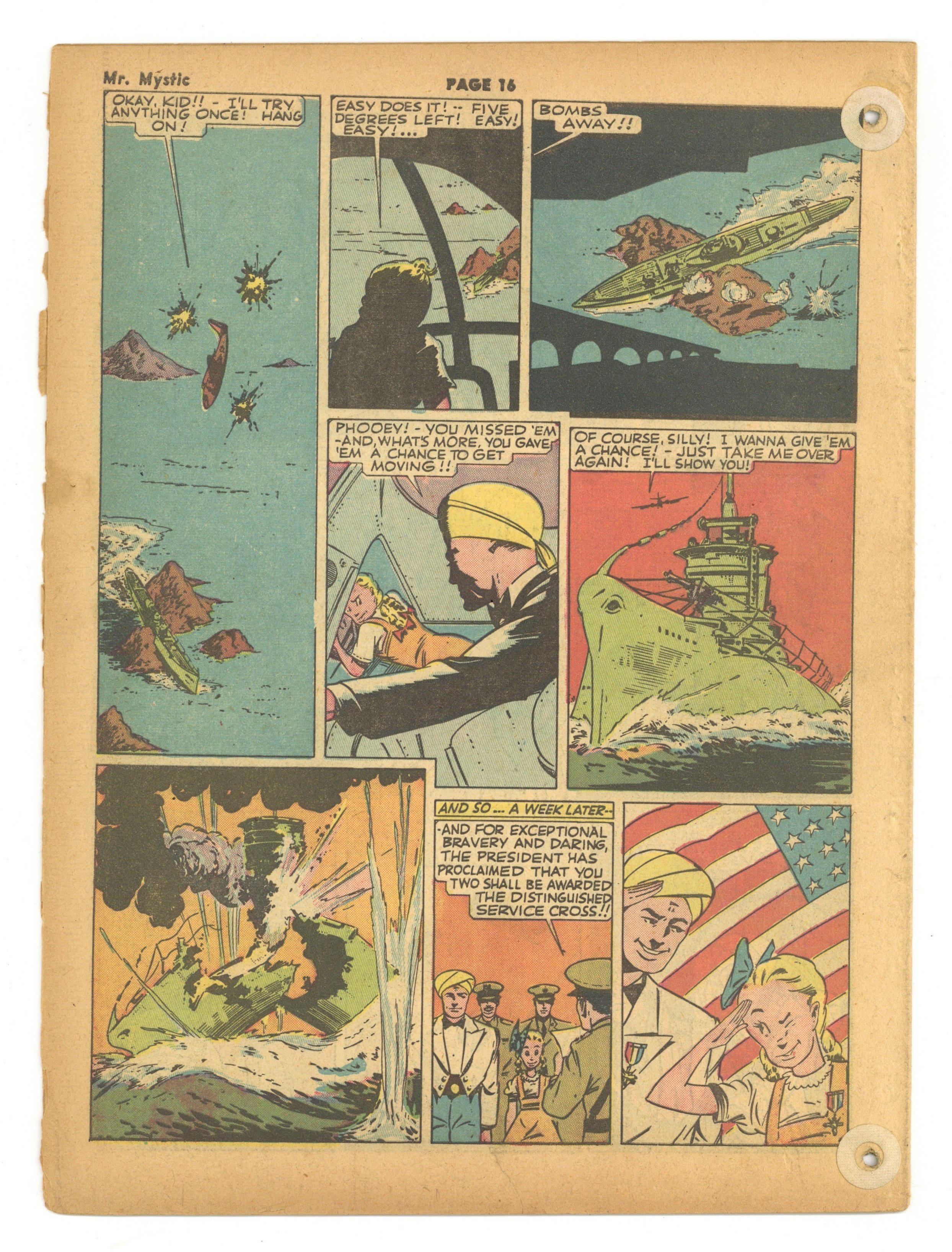 Starts Jan 3 Cover art by Reed Crandall. The Absent Minded Corpse! starring Midnight; Sam and Dan are twins; One of them shoots the other, but he has amnesia, so who's alive and who's dead? Yankee Eagle story, art by Al Gabriele. Bozo the Robot story, script and art by George Brenner. Rookie Rankin story. Ray story, art by Rudy Palais. The Story of a Blind Man Who Could See starring Espionage Starring Black X. Wun Cloo humor page by Jack Cole. Marksman story, script and art by Fred Guardineer. AH-H-H-H-H-C-H-W-W-W-W-W----- starring Jester, script and art by Paul Gustavson. 68 pgs. $0.10. Cover price $0.10.
