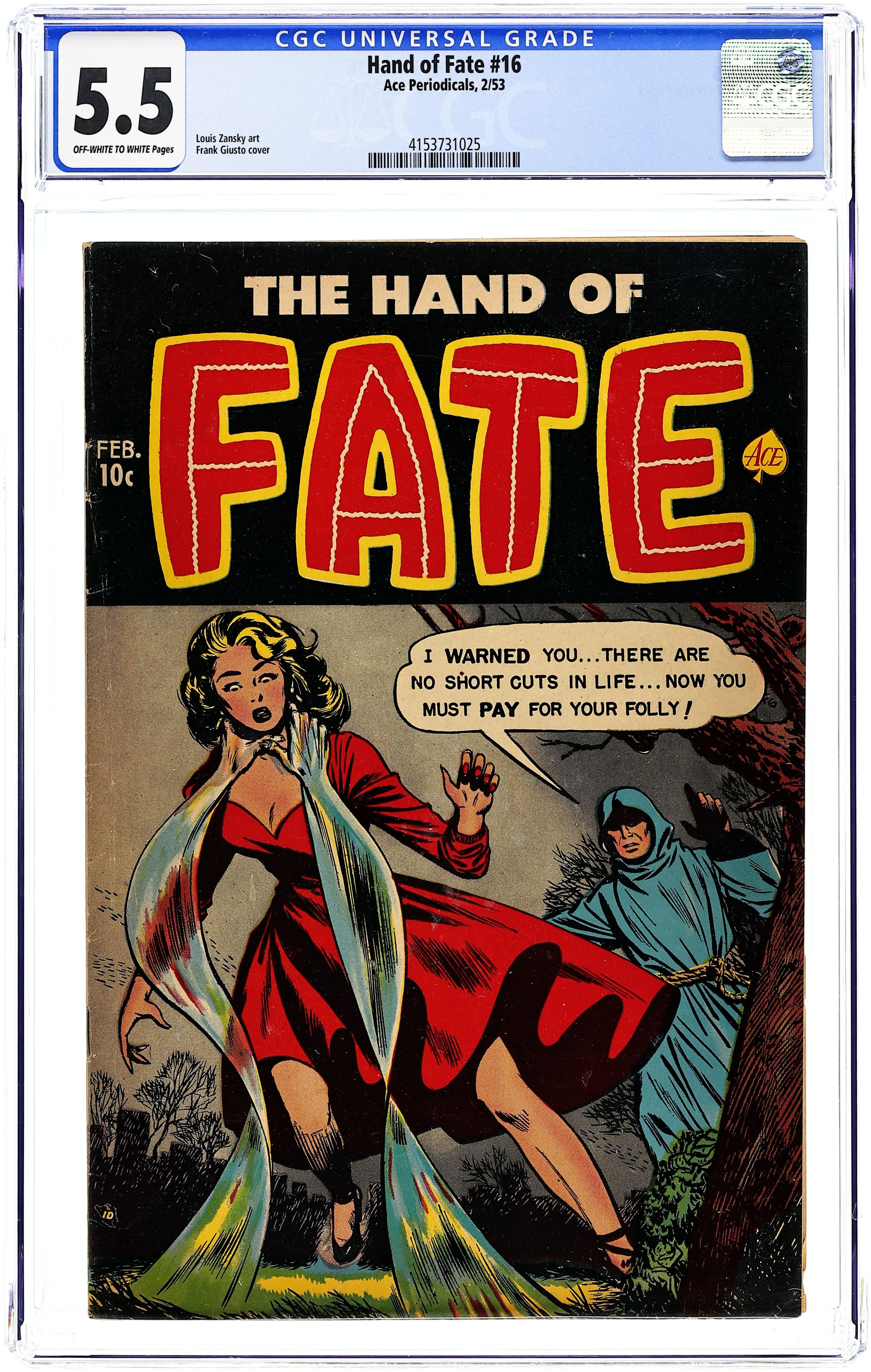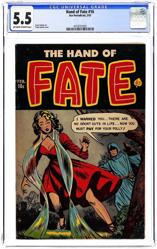 Published Feb 1953 by Ace Magazines.Hand of Fate (1951 Ace) 16 CGC 5.5