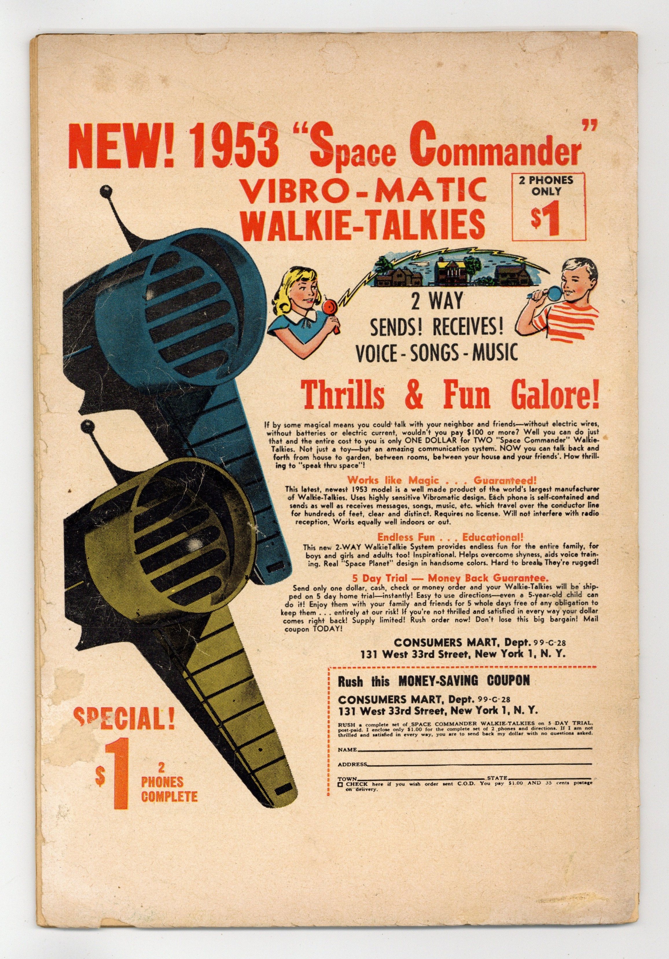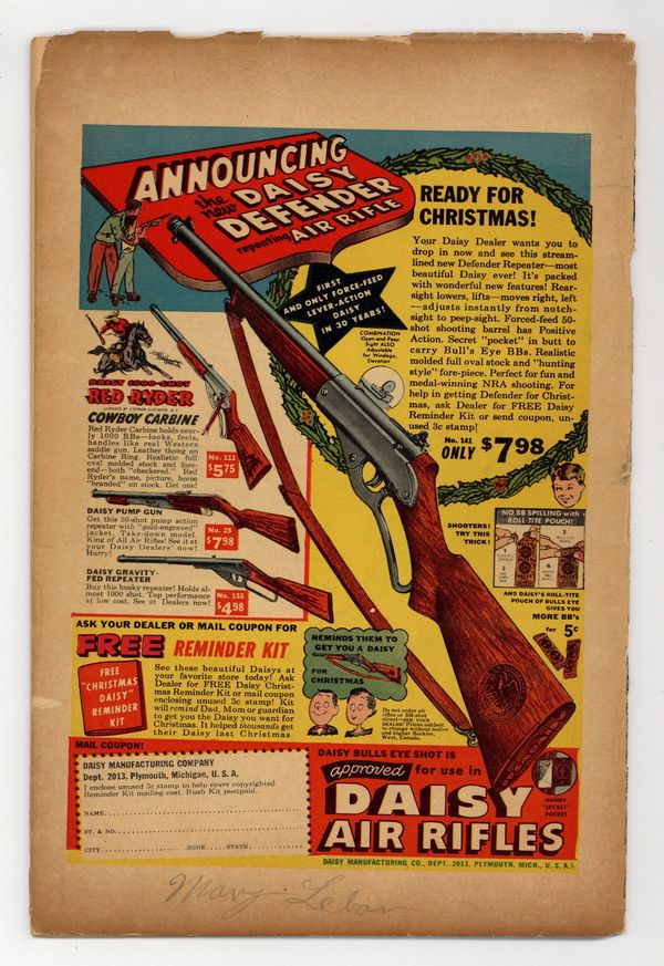 Ends Dec 8 7:07 PM CST Bid History 5 bids Current Bid $13 Your Secret Max Bid If you'd like to bid, please log in or register. Cover art by Owen Fitzgerald. G-Man Jr. starring Dean Martin and Jerry Lewis, art by Owen Fitzgerald; Lili and her aunt hire Dean and Jerry to help guard a map which will take them to the secret of eternal youth. How Safe Is Your Driving public service announcement starring Buzzy, script by Jack Schiff, art by Win Mortimer. G-Man Jr. Part 2. Peg humor page by Henry Boltinoff. G-Man Jr. Part 3. Honey in Hollywood humor page by Henry Boltinoff. Meet Ozzie and Harriet--Twisting the Dial article, art by Raymond Perry. Untitled Rusty story. 44 pgs. Cover price $0.10.