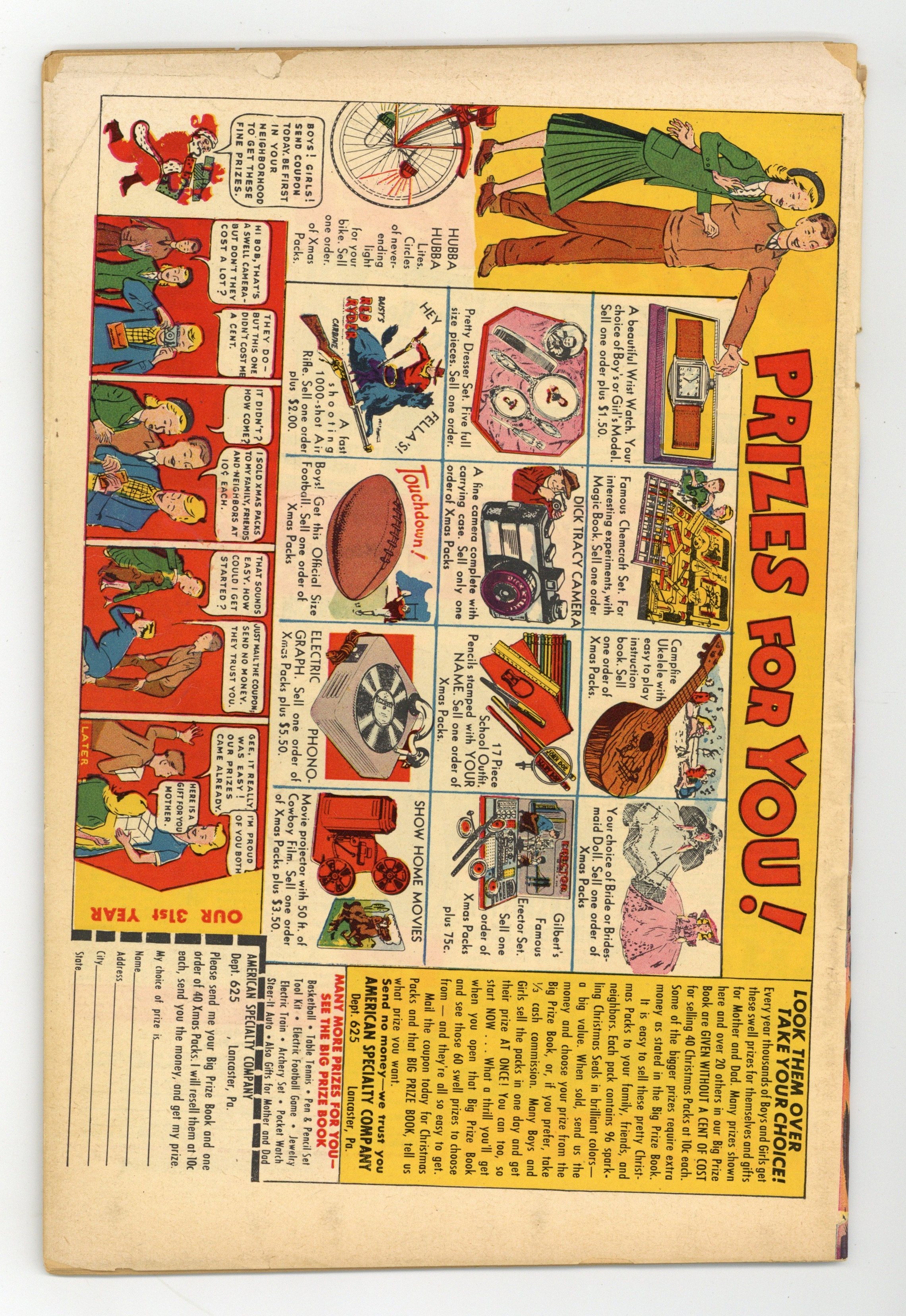 Starts Jan 3 Cover by Joe Doolin and others. Edited by Jack Byrne and Jerry Iger. Stories and art by Jack Kamen, Nick Cardy, Robert Webb, John Forte and Matt Baker. A combat-themed anthology from Fiction House that featured early work from many future comics legends (often uncredited) in the Eisner-Iger Shop. Good-girl art aplenty as Tiger Girl tries to aid a pygmy tribe; A masquerade party complicates a mystery on a yacht for Hooks Devlin and his gal Peaches; Senorita Rio must stop a plot to free the dictator El Fuente, in a story drawn by Rio creator Nick Cardy. Another upside-down bondage cover, a recurring theme on this title, with Tiger Girl likely drawn by various hands in the Iger Shop. Tiger Girl; Risks, Unlimited starring Rip Carson; Kayo Kirby; Delayed Payment; Hooks Devlin; Senorita Rio; Captain Fight. 52 pages, Full Color. Cover price $0.10.
