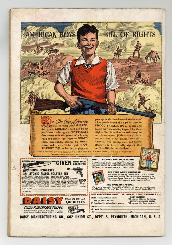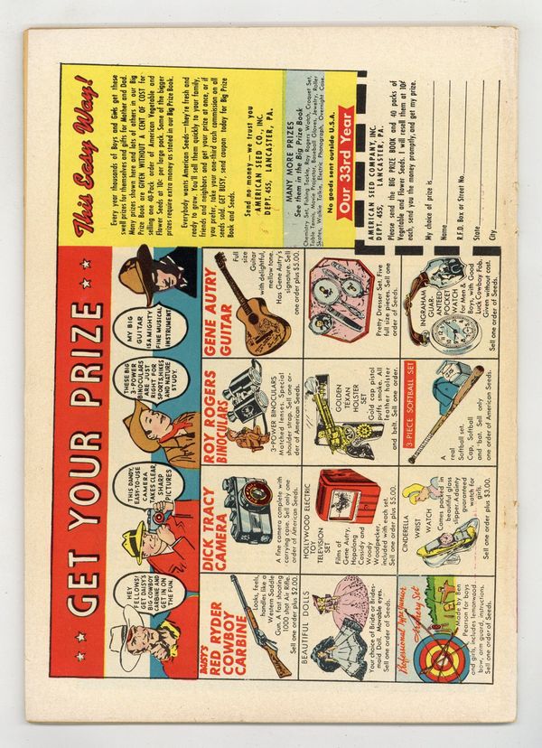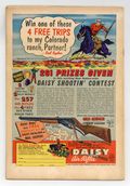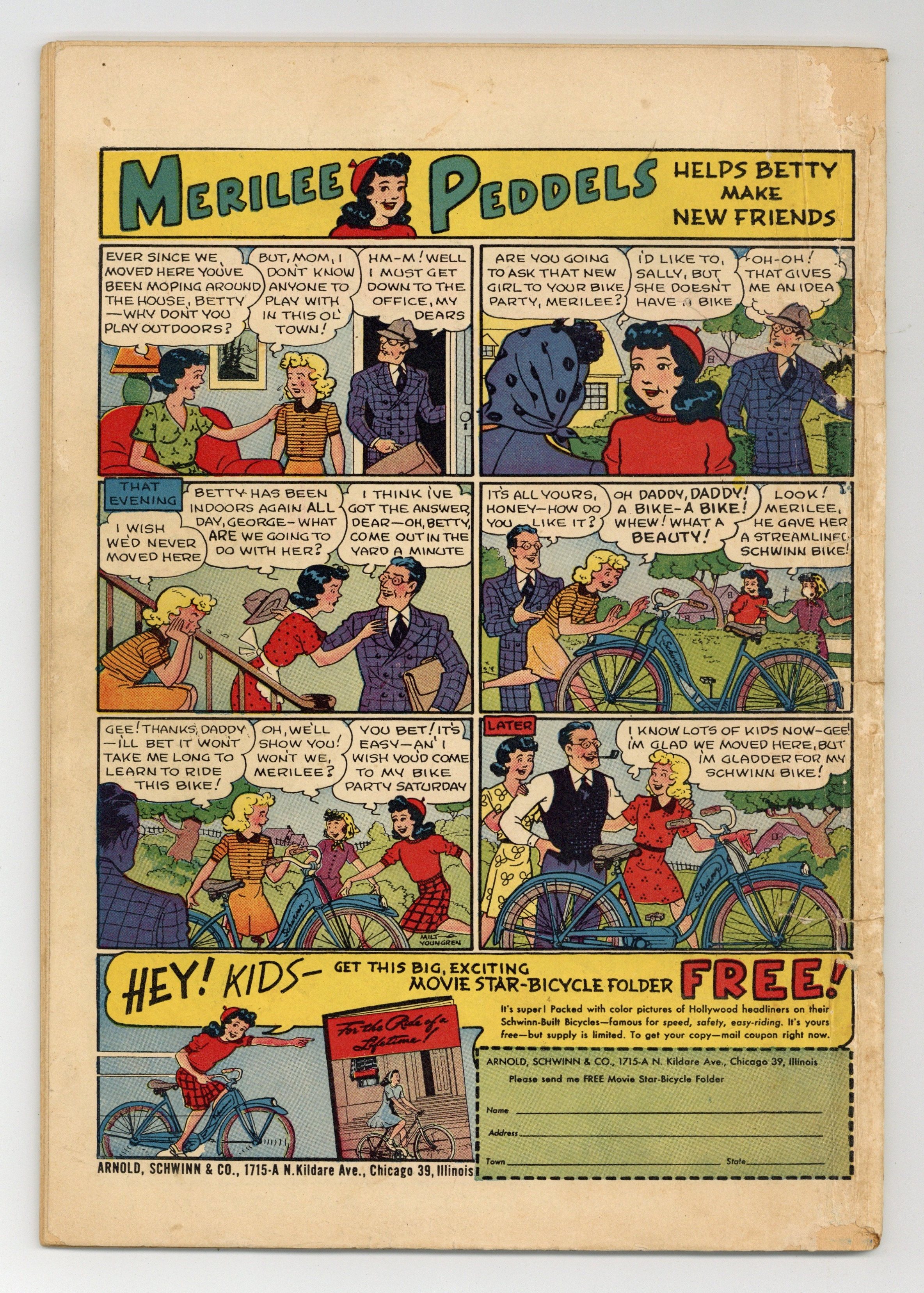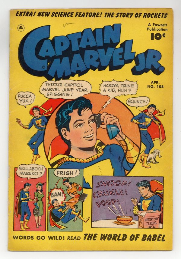 Ends Dec 8 7:49 PM CST Bid History 6 bids Current Bid $31 Your Secret Max Bid If you'd like to bid, please log in or register. Cover by Bud Thompson. Stories by Bill Woolfolk and others. Art by C. C. Beck and Bud Thompson. Superhero action with Freddy Freeman, who gains the same powers as his hero Captain Marvel, better known these days as Shazam. Sivana Jr.'s latest invention reduces all language to gibberish, causing worldwide chaos and spurring Captain Marvel Jr. to action. In an educational strip by Shazam co-creator CC Beck, Dr. Science explains rocket science to young Johnny, and predicts future "rocket liners" (not yet) and space stations. A mad scientist's invention removes all the sand from a small community, and deposits it in the city where Captain Marvel Jr. sells his papers. Plus a vintage ad for Paramount Pictures' When Worlds Collide (the movie and the comic). The World of Babel; Mannerly Manners; Kanvasback: The Easy Mark; Faster Than Sound; Painted in Blood; Freddy Freeman's Lost Week End; The Great Sandstorm. 32 pages, Full Color. Cover price $0.10.