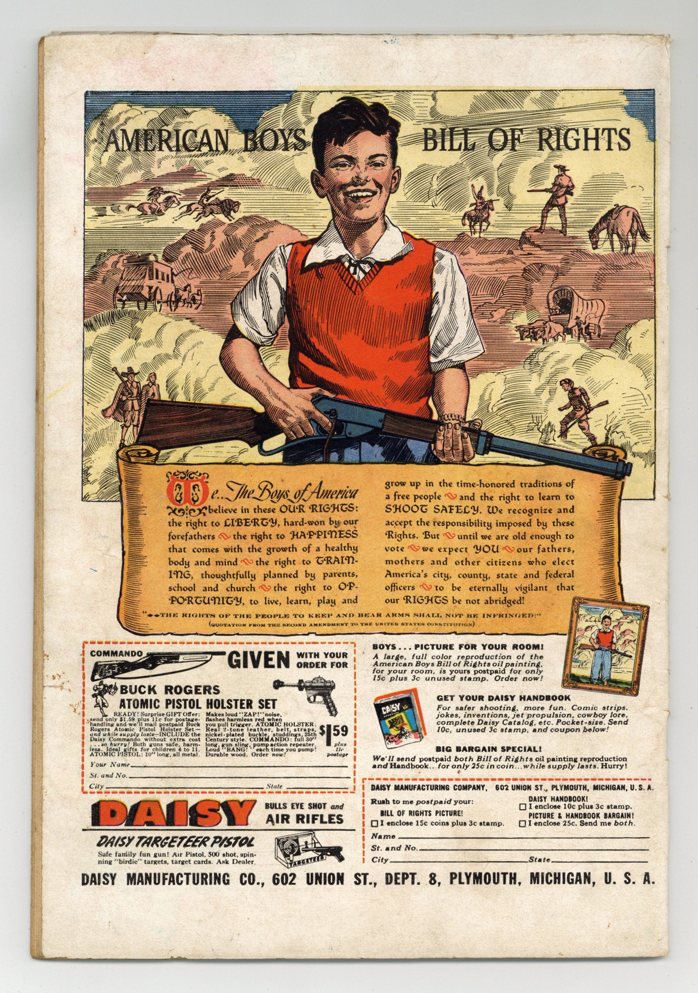 Starts Dec 22 Cover by Kurt Schaffenberger. Stories by Bill Woolfolk, Howard Boughner, Art Helfant and Otto Binder. Art by Bill Ward, Bud Thompson, Art Helfant, Howard Boughner and Joe Certa. Superhero action with Freddy Freeman, who gains the same powers as his hero Captain Marvel, better known these days as Shazam. Lightning Lenny's electrical powers allow him to use ball lightning to commit crimes, in revenge for his father's execution in the electric chair. Another strange supervillain is the King of the Dogs, who can command an army of canines to do his bidding. (Note the dog operating the Gatling gun on the cover!) Captain Marvel Jr. traces mysterious disappearances to a gigantic "Space Fisherman," complete with fishhook and tackle box, in a story featuring early art by legendary good-girl artist Bill Ward. The Electrical Bandit; Judge Smudge; Rubbernose Randolph; Lazy Lee; Kanvasback: The Family Reunion; The Space Fisherman; Boxcar Benny; The King of the Dogs; The Elemental Menace; The Exiled Earth; The Demon Fencer. 48 pages, Full Color. Cover price $0.10.