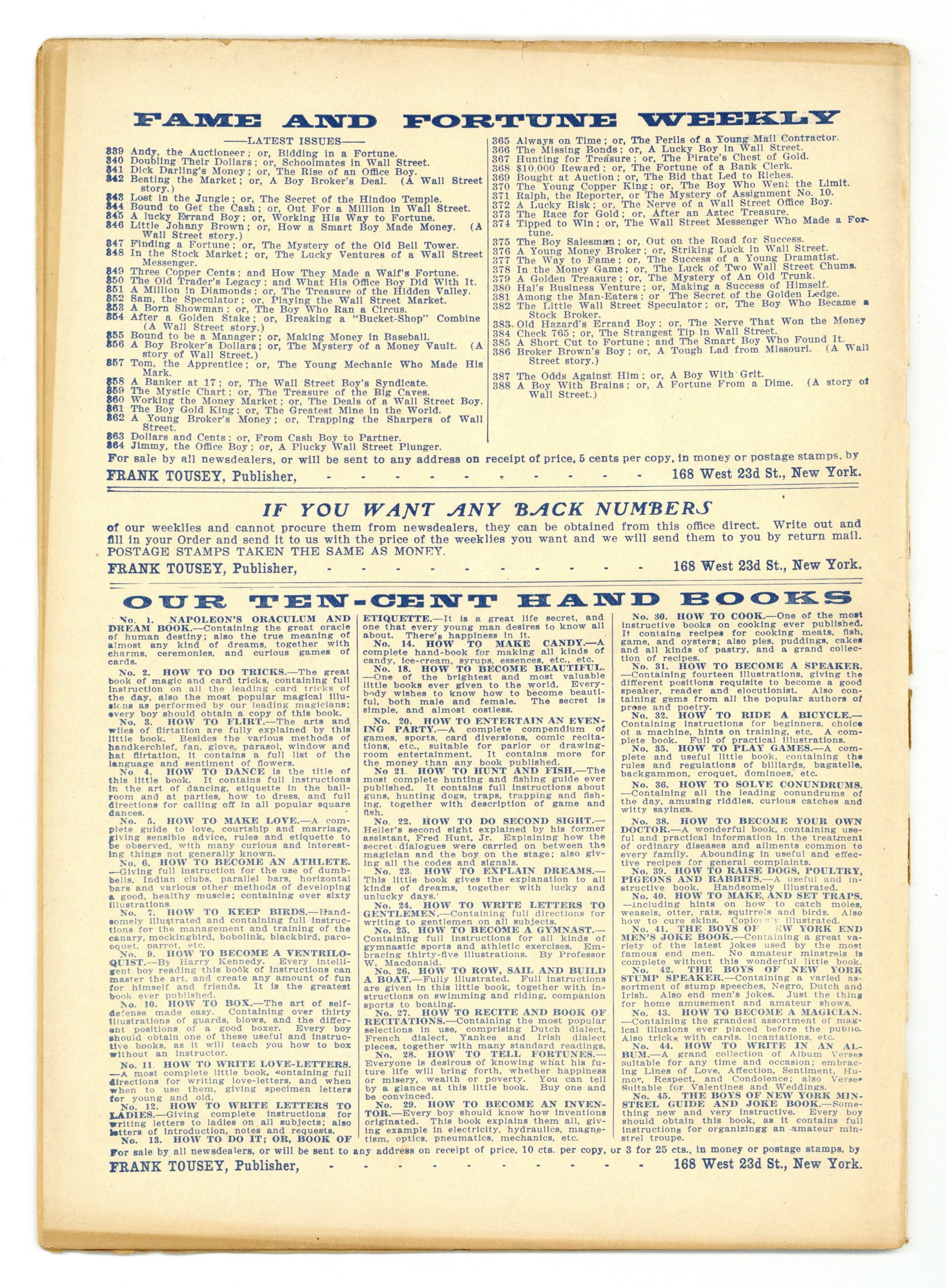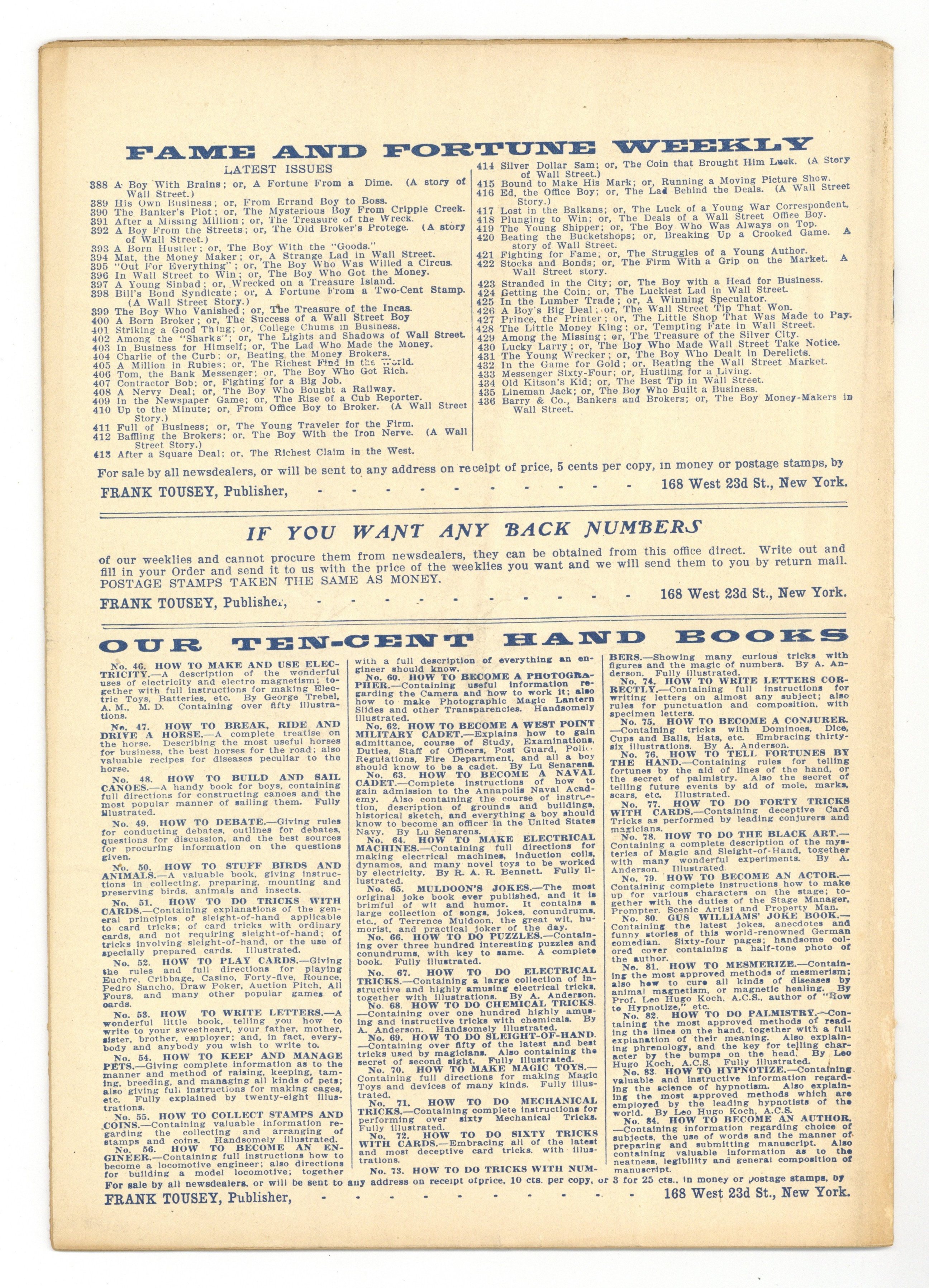 Published Feb 1913 by Frank Tousey.Fame and Fortune Weekly (1905-1928 Frank Tousey) 387 GD+ 2.5
