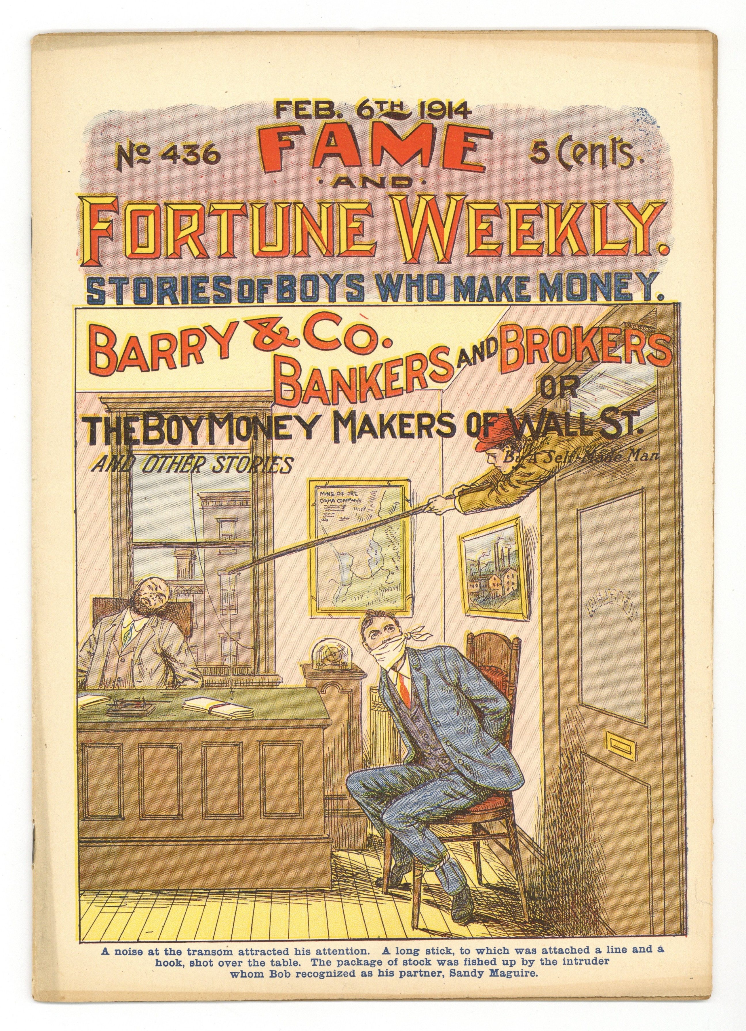 Starts Jan 3 February 6, 1914. Barry & Co. Bankers and Brokers; or, The Boy Money Makers of Wall St.. 11" x 8", 32 pages. Cover price $0.05.