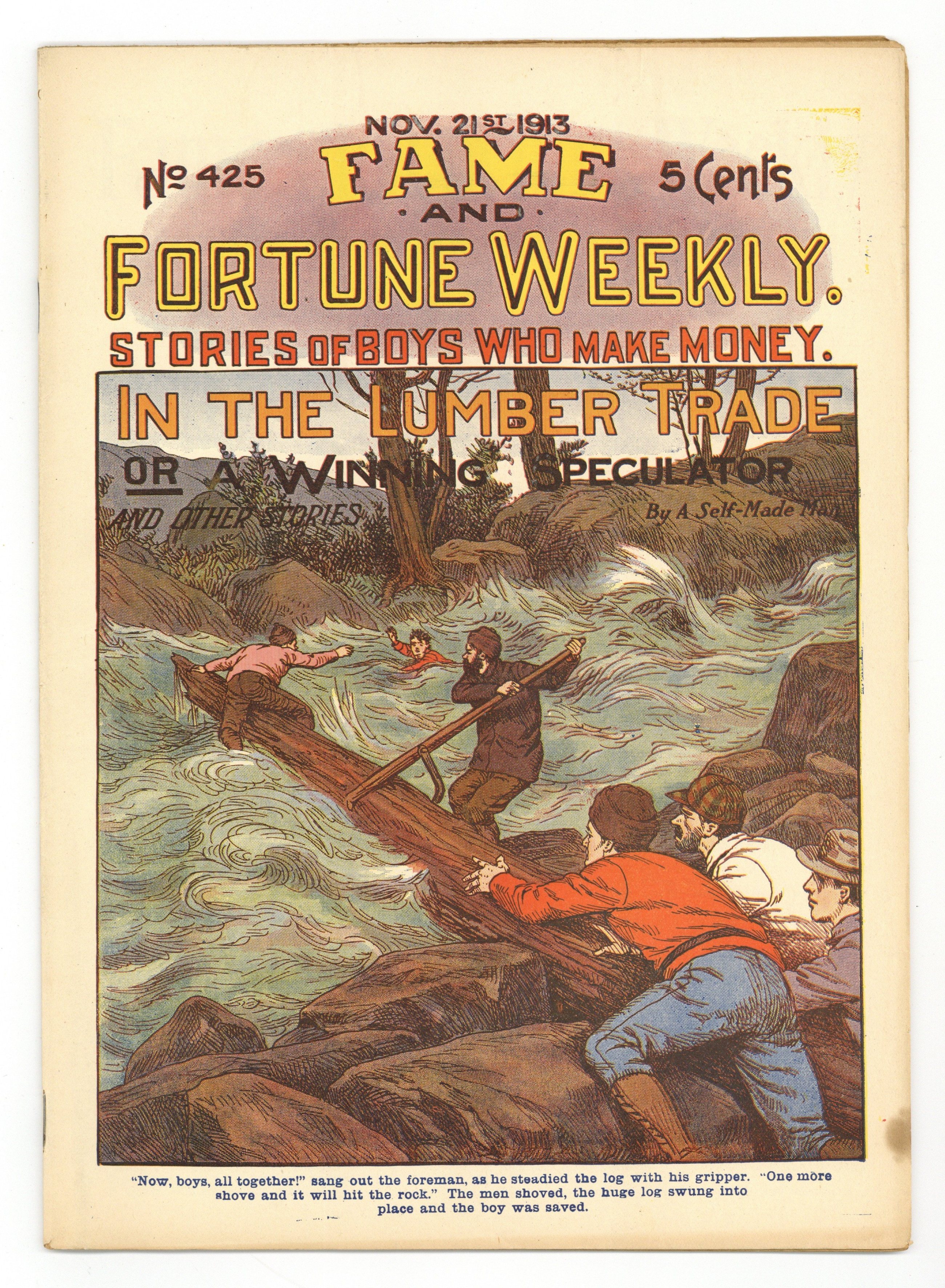 Starts Apr 4 November 21, 1913. In the Lumber Trade; or, A Winning Speculator. 11" x 8", 32 pages. Cover price $0.05.