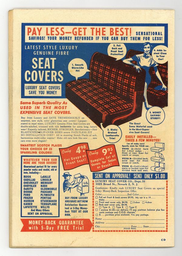 Ends Dec 8 7:57 PM CST Bid History 10 bids Current Bid $30 Your Secret Max Bid If you'd like to bid, please log in or register. Cover by Dan Zolnerowich. Stories and art by Mort Lawrence, Leo Morey, George Roussos, E. J. Smalle and Gene Colan. Tales of crime and mobsters, both true and fictional, a prime example of the genre that thrived in the years before the Comics Code. Brooklyn gangster Subways Galgane decides to get into the cigar business, in a story with early art by comics legend Gene Colan. Twin sisters Rose and Elizabeth Benson progress from shoplifting to murder, in a story with some stylish Victorian bad-girl art by Mort Lawrence. A murder mystery in 1895 Paris features Monsieur Lecoq, the pioneering detective character who was a forerunner of Sherlock Holmes. Bad Boy of Brooklyn; The Deadly Benson Sisters; Paris after Dark; The Smith Pier Gang; The Case of the Sensitive Feet; The Perfect Crime. 48 pages, Full Color. Cover price $0.10.