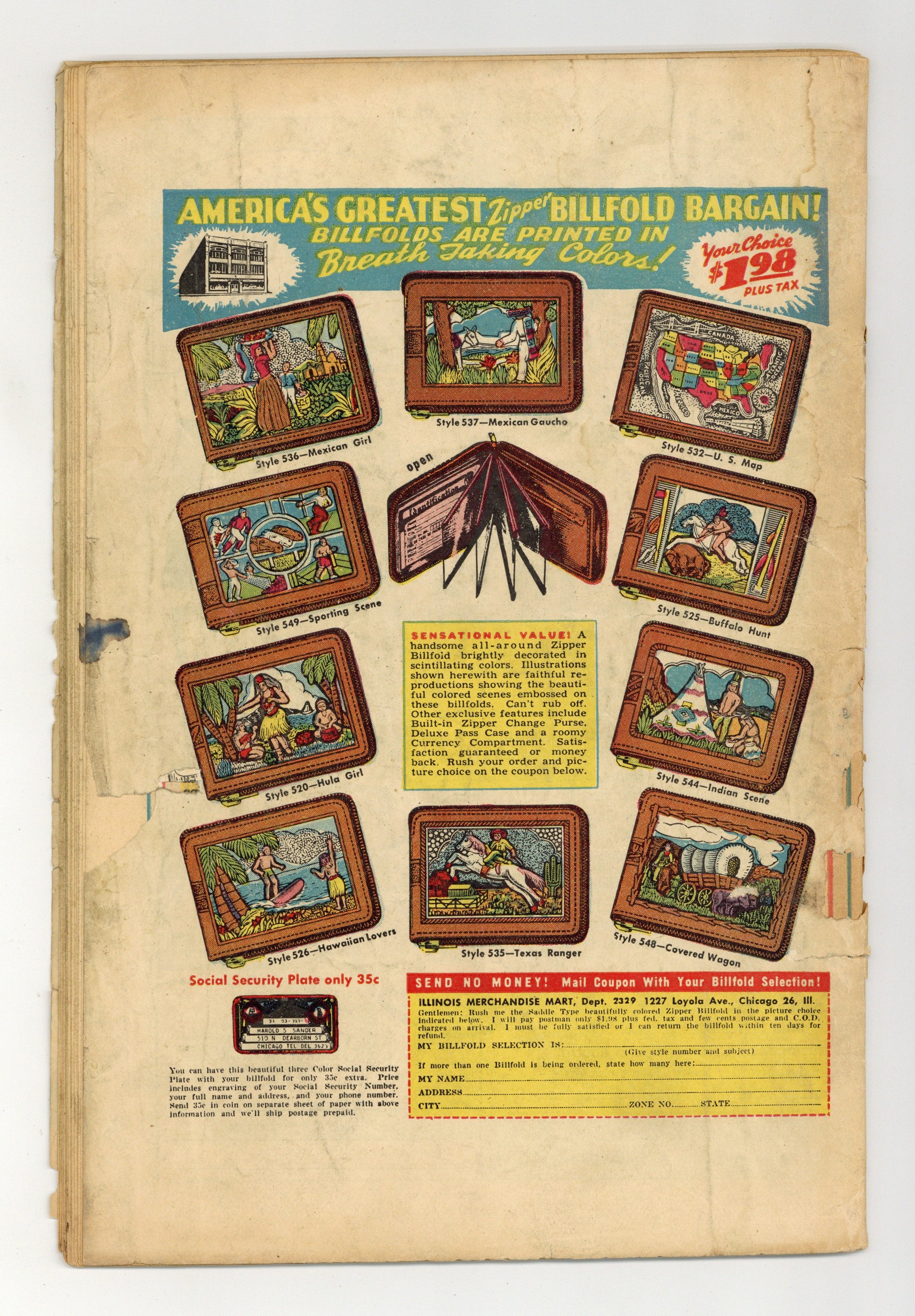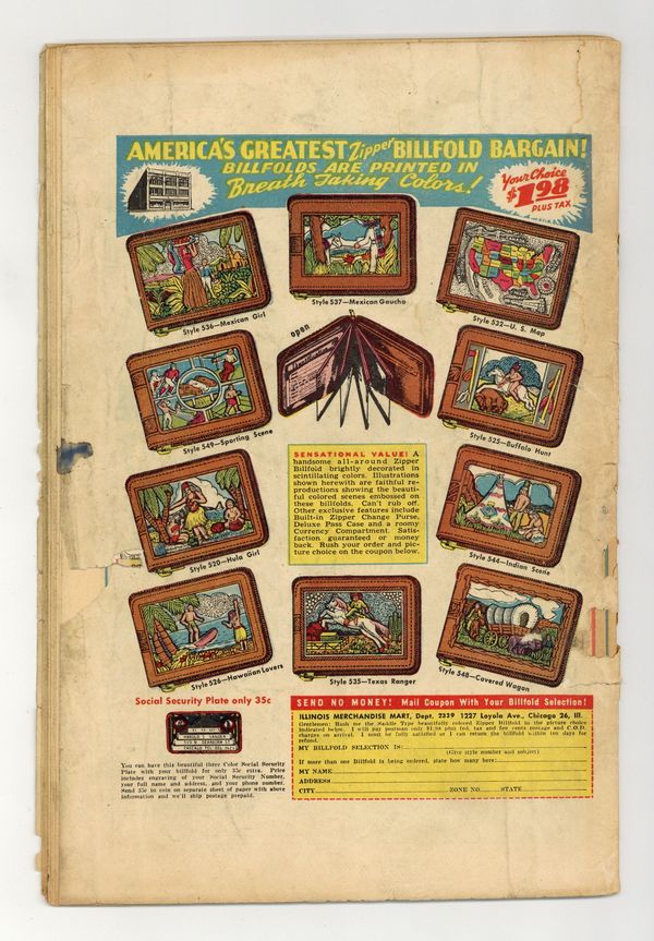 INCOMPLETE. Centerfold missing, interrupts art and story. Water damage.