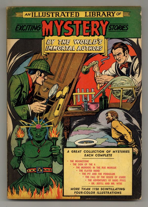 Starts Jan 3 An Illustrated Library of Exciting Mystery Stories. All new Alex Blum cover. A collection of four Classics Illustrated stories in one volume, grouped by mystery theme. This one contains reprints of #13 Dr. Jekyll and Mr. Hyde, #21 3 Famous Mysteries, #30 The Moonstone, and #40 Mysteries. 192 pages, full color.