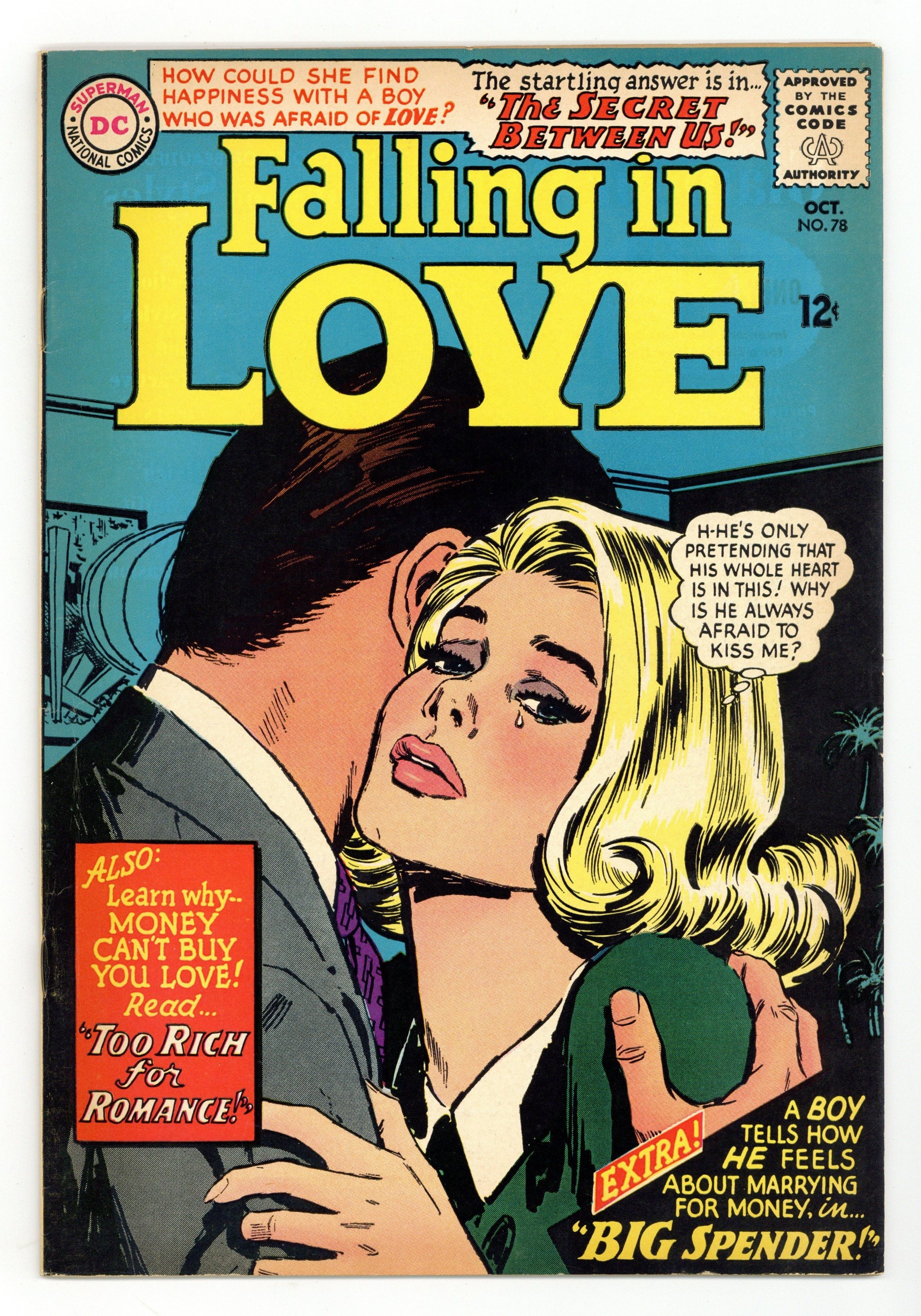 Starts May 11 How could she find happiness with a boy who was afraid of love? "The Secret Between Us" is the cover-featured 10 page story pencilled by J. Pike. Plus: Learn why money can't buy you love! "Too Rich for Romance" is the 13 page story pencilled by Arthur Peddy. Also: A boy tells how HE feels about marrying for money in the 7 page story "Big Spender." And: 1 page To You...From Carol Andrews letters page. Cover by Jay Scott Pike. Cover price $0.12.