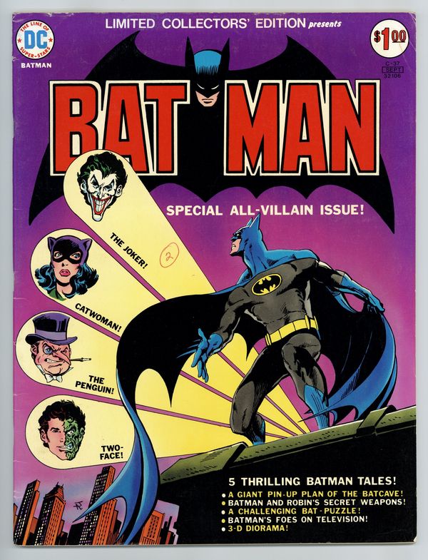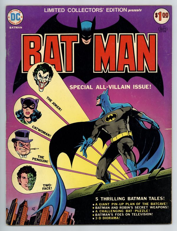 Starts Mar 23 Limited Collectors' Edition: Batman reprints from the 1940s. Jim Aparo cover. Size is 10 x 13-1/2" (about the size of a Life magazine). Cover price $1.00.