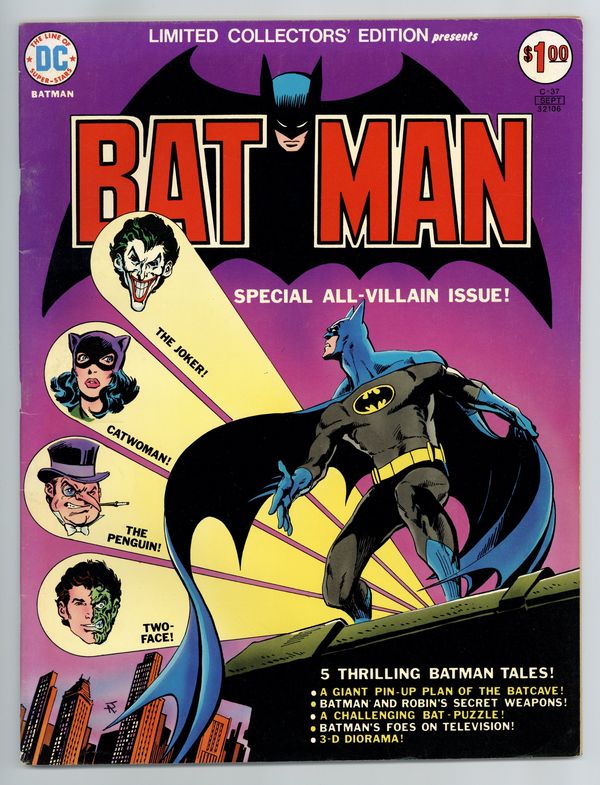 Starts Apr 20 Limited Collectors' Edition: Batman reprints from the 1940s. Jim Aparo cover. Size is 10 x 13-1/2" (about the size of a Life magazine). Cover price $1.00.