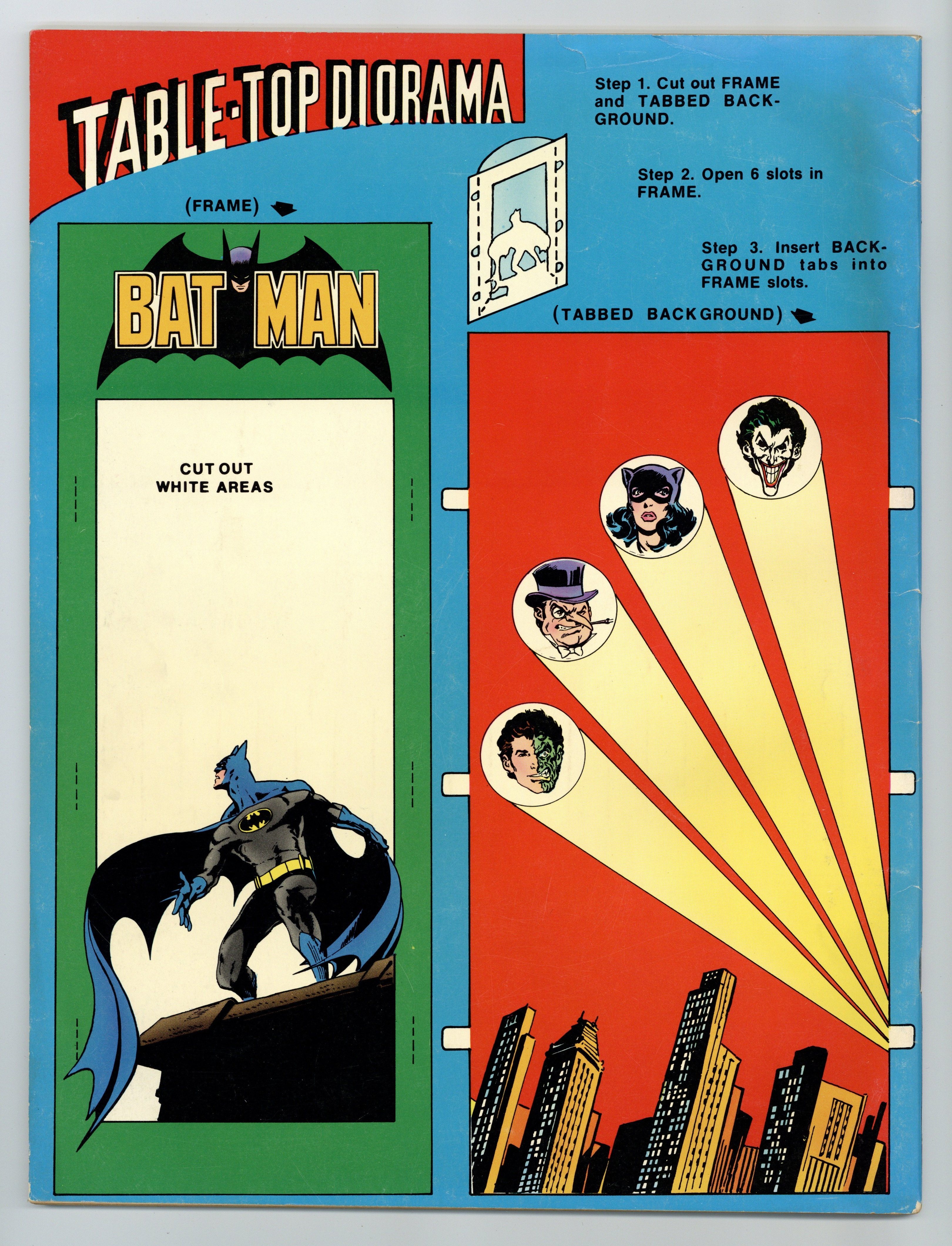 Starts Mar 23 Cover art by Ernie Chan (as Ernie Chua). Hostess Cup Cakes ad starring Captain Marvel, pencils by Curt Swan, inks by Vince Colletta. Gotham City Treasure Hunt! starring Batman, script by David Vern (as David V. Reed), art by Ernie Chan (as Ernie Chua); Batman must face a group of villains involved in an international crime contest. Justice for All Includes Children, 2 public service announcement, art by Neal Adams. Letter from Adam Castro. 36 Pages, Full Color. Cover price $0.30.