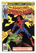 Ends Mar 2 7:13 PM CST Bid History no bids Minimum Bid $1 Your Secret Max Bid If you'd like to bid, please log in or register. "Spider, Spider, Burning Bright!" Part 2 of 2. Script by Marv Wolfman. Pencils by Ross Andru. Inks by Mike Esposito. Cover by Ross Andru and Mike Esposito. The Spectacular Spider-Man is on fire in Chinatown! And hurtling towards the East River to save his life! Thankfully, the murky waters extinguish the flames and give the wall-crawler a chance to regroup! The following night the web-slinger returns to the Lower East Side to battle the White Dragon again! Will the way of the spider or the way of the (white) dragon prevail? Second story: At long last Peter Parker's graduation day from Empire State University is here! But Peter may want to check one more time with the registrars office...before walking across the stage! Cameo appearances by J. Jonah Jameson, Flash Thompson, Harry Osborn, Betty Brant, Joe Robertson, and Aunt May. (Notes: The White Dragon appears next in Marvel Team-Up 144. This issue concludes Ross Andru's remarkable 5-year run as the penciler of the Amazing Spider-Man series -- highlighted by the original clone saga and the creations of the Punisher, Jackal, and Tarantula.) 36 pages. Cover price $0.35.