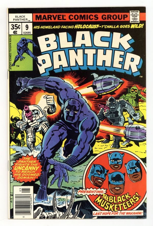 Starts Mar 9 Cover pencils by Jack Kirby. Black Musketeers, script and pencils by Jack Kirby, inks by Mike Royer; With T'Challa still making his way back to Wakanda, the Wakandan royal family, calling themselves the Musketeers, do battle with Jakarra. 36 pgs. $0.35. Cover price $0.35.
