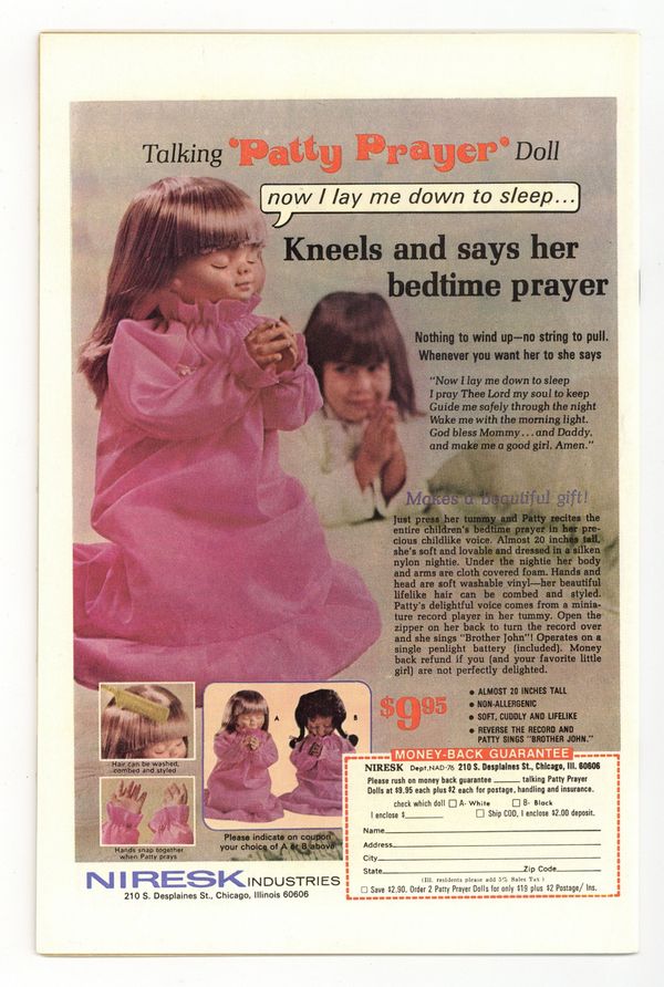 Starts Apr 4 Cover art by Jim Aparo. Hostess snack cakes ad with Aquaman and Mera. "The Mad Hatter Goes Straight!", script by David Vern (as David V. Reed), pencils by Rich Buckler, inks by Vince Colletta; The Mad Hatter, sad that crime isn't fun anymore, reminisces about his youth, when he would fantasize about being a white-hatted sheriff or a plume-hatted cavalier, or wearing the hat of a Foreign Legionnaire; Since his fantasies were always about fighting as a good guy, he decides to give up crime and go straight; Hatter begins by mimicking a sheriff on horseback and stops two muggers from robbing Bruce Wayne and his date. Letter from comics historian Peter Sanderson. A Word About the Fight of the Century article by publisher Jenette Kahn. 36 Pages, Full Color. Cover price $0.35.