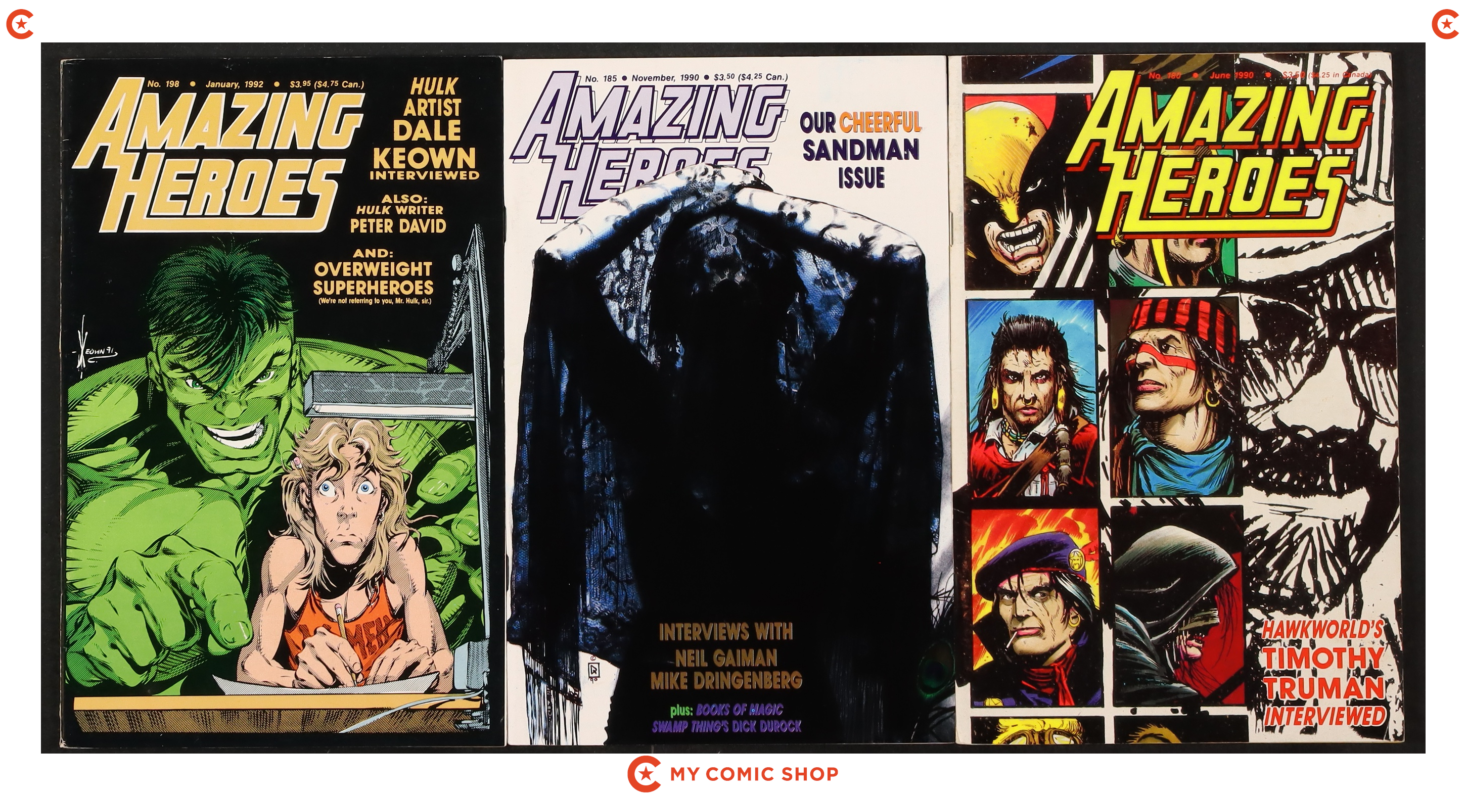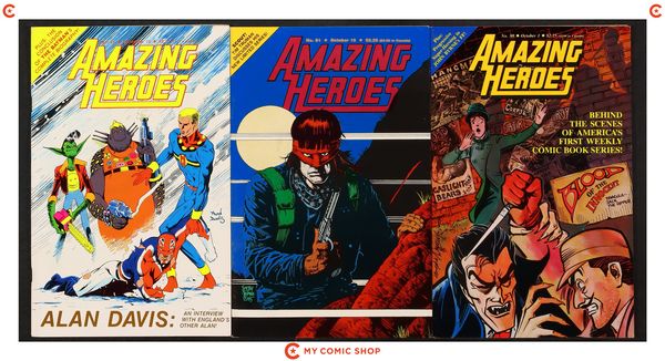 Issues 180, 185, and 198 of Amazing Heroes (1981). Most will grade in the VG to FN range.