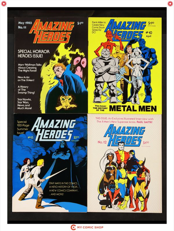 Issues 10, 11, 12, 13 of Amazing Heroes (1981) . Most will grade in the FN- to FN/VF range.