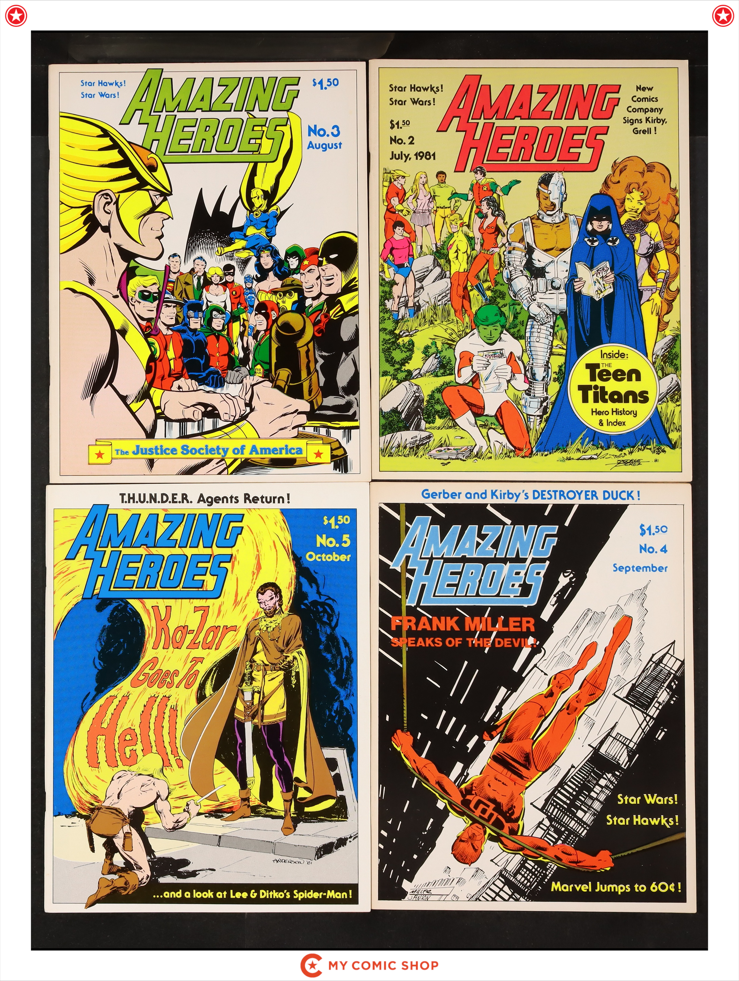 Issues 2, 3, 4, 5 of Amazing Heroes (1981). Most will grade in the FN to VF range.