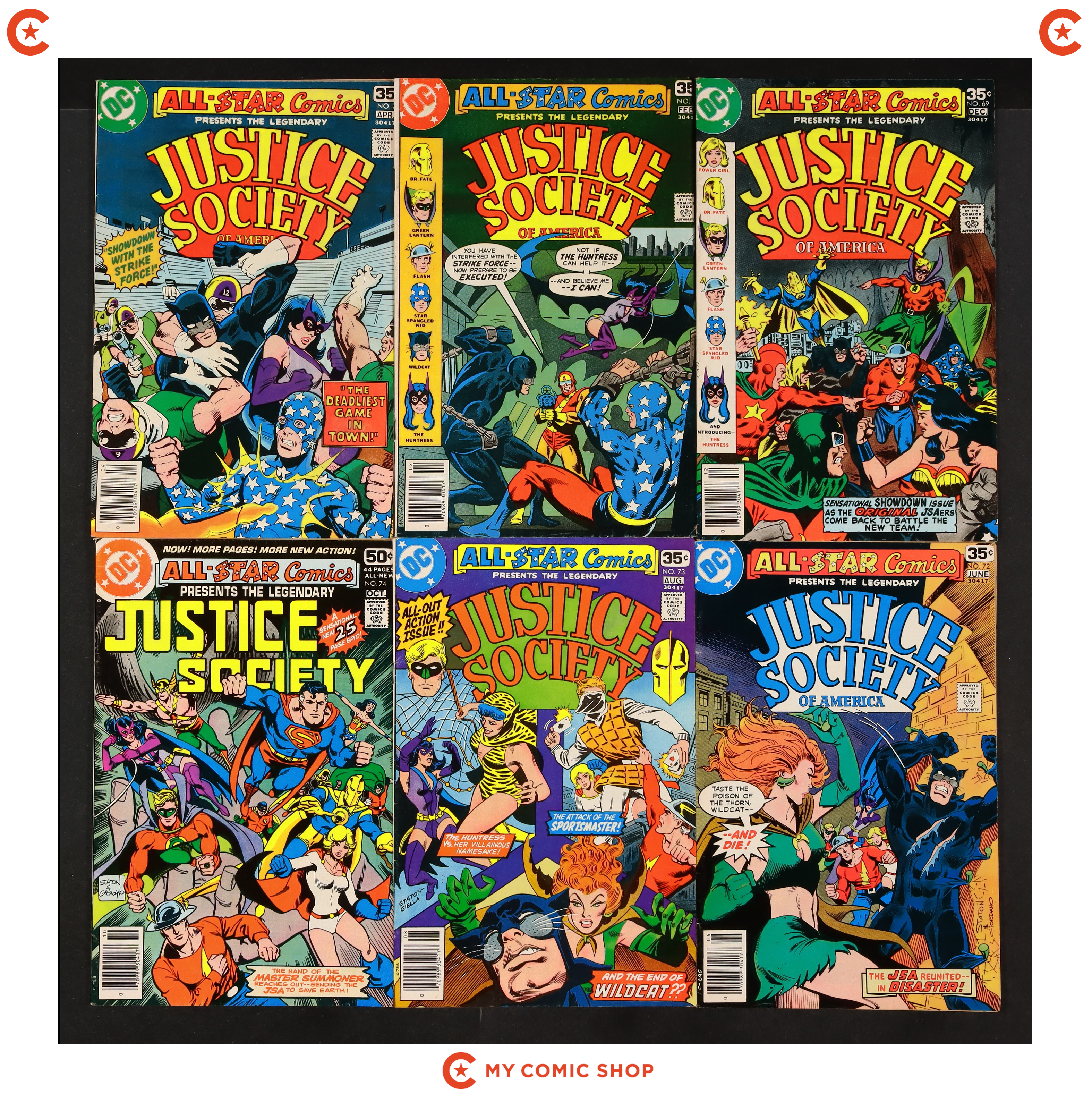 Issues 59, 60, 61, 62, 63, 64, 65, 66, 67, 68, 69, 70, 71, 72, 73, 74 of All Star Comics (1940-1978). Most will grade in the VG to FN range.