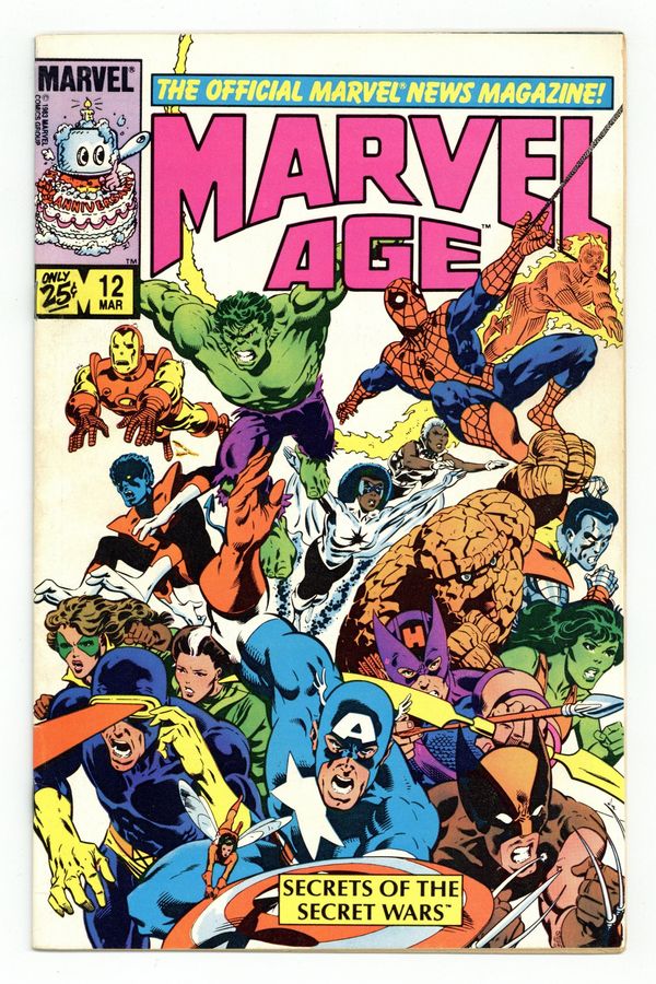Starts Mar 2 It's the big Marvel Super Heroes Secret Wars Issue! Get a preview on all the stuff from the historic series! PLUS! See Spider-man's black costume sketches in a comic that came out 2 MONTHS BEFORE Amazing Spider-Man # 252 (and Marvel Team-Up # 141 & Spectacular Spider-Man # 90. Secret Wars # 8 came out 7 months later). Article on Secret Wars, with designs of Spider-Man's new costume; Associate Editor Jo Duffy discusses Heartburst; writer Jim Salicrup discusses The A -Team; Secret Wars. Cover by Mike Zeck and John Beatty.