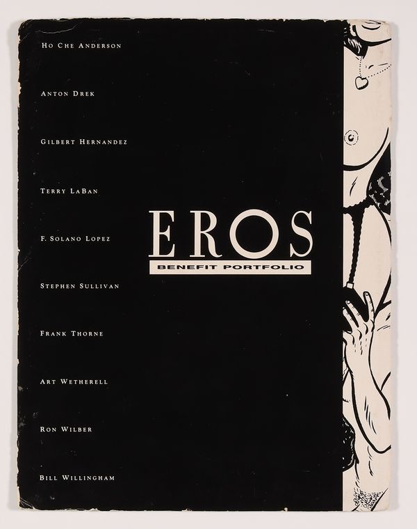 Ends Dec 8 8:12 PM CST Bid History 8 bids Current Bid $32 Your Secret Max Bid If you'd like to bid, please log in or register. Eros Benefit Portfolio with all proceeds going to the American Anti-Censorship Foundation. Prints from artists Ho Che Anderson, Anton Drek, Gilbert Hernandez, Terry Laban, F. Solano Lopez, Stephen Sullivan, Frank Thorne, Art Wetherell, Ron Wilber, and Bill Willingham. SET 01 includes ten 9 x 12 black and white prints and a 9 1/2 x 12 1/2 portfolio folder. Mature content, Adults Only.