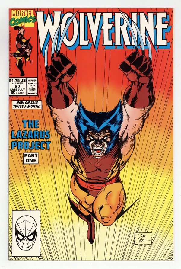 Starts Apr 27 Direct Edition. The Lazarus Project: Part 1 of 4 - "Predators and Prey!" Written by Jo Duffy. Art by John Buscema and Dan Green. Cover by Jim Lee. A mysterious broker makes a deal with Coy to complete the nefarious Lazarus Project. Meanwhile, deep inside the Baron's palace, Wolverine and Jessica Drew discover brand new threat. 32 pages, FC Cover price $1.75.