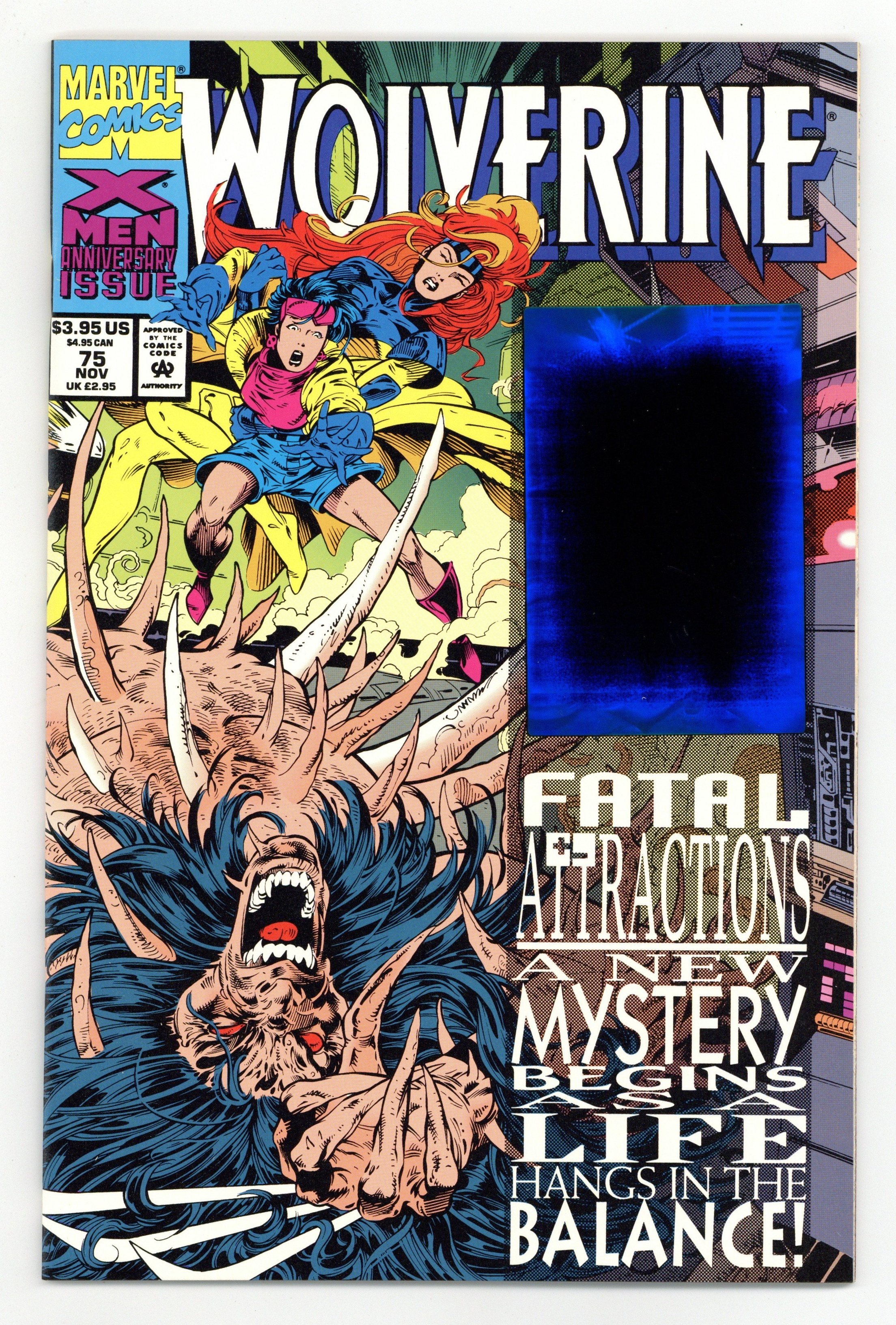 Starts Apr 4 Direct Edition. Fatal Attractions: Part 5 of 6 - Hologram card on cover - "Nightmares Persist!" Guest-starring the X-Men. Written by Larry Hama. Art by Adam Kubert, Mark Farmer, Dan Green, and Mark Pennington. Story continued from X-Men (1991-2008 1st Series) #25 - The storyline that changed the feral X-Man's life continues! Magneto, the Master of Magnetism, just sucked out all the Adamantium in Wolverine's body, leaving him a bloody, pulpy mess. First appearance of Wolverine's bone claws. Can even Wolverine's vaunted healing factor save him this time? Can Jean Grey's mutants powers keep his body in one piece long enough for it to try? Story concludes in Excalibur #(1988 1st Series) #71. 32 pages, FC NOTE: Adam Kubert jumps on board with issue joining Larry Hama on a run that will some of the finest Wolverine stories to date. In a time of Clone Sagas, Heroes Reborn, and watered down tough guys with guns comics, the Kubert/Hama run on Wolverine (along with the Age of Apocalypse storyline) kept me reading comics long enough for them to get good again. - Odinson, Lone Star Comics Archivist Cover price $3.95.