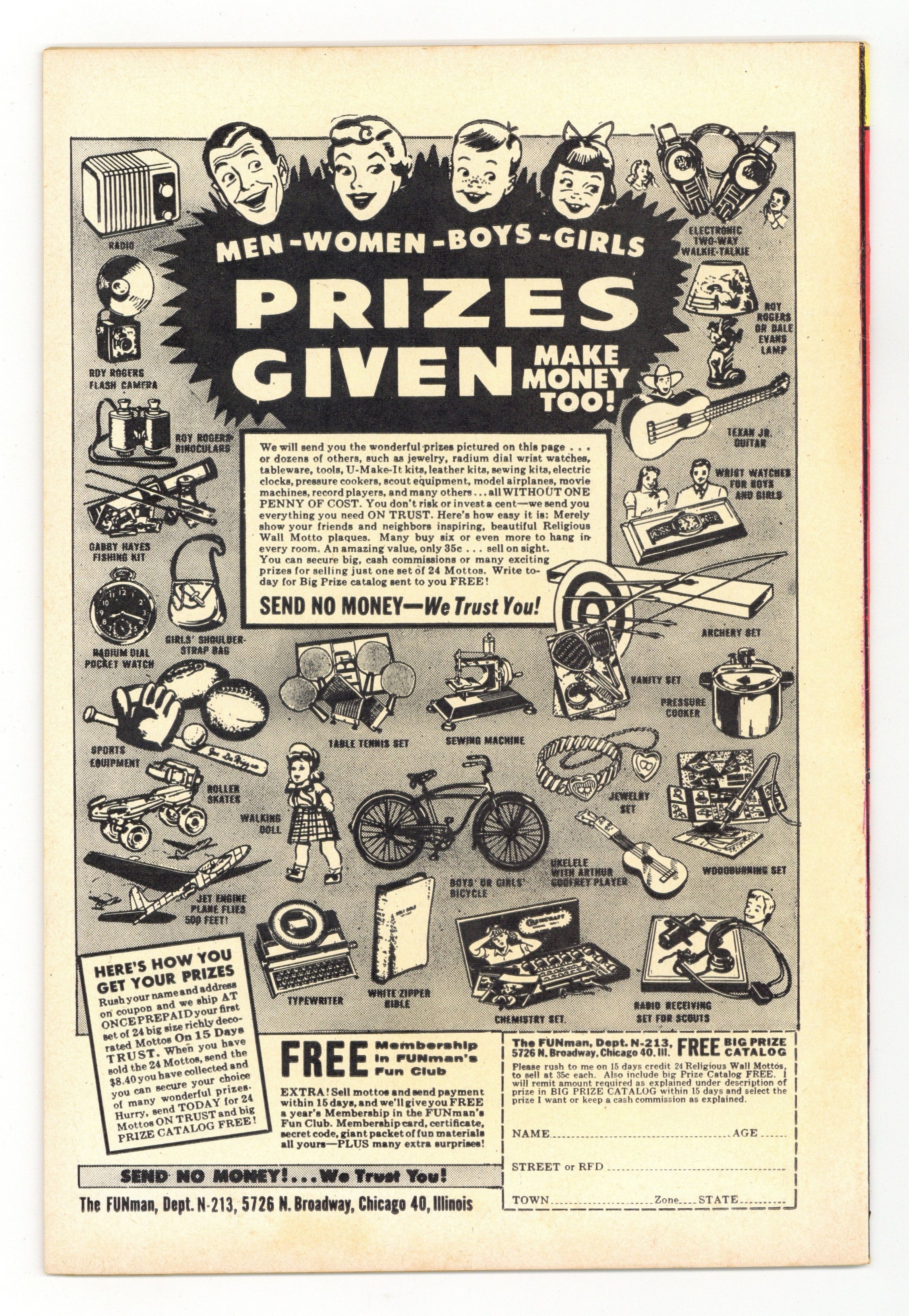 Ends Apr 13 9:14 PM CST Bid History 3 bids Current Bid $21 Your Secret Max Bid If you'd like to bid, please log in or register. Cover pencils by Curt Swan, inks by Stan Kaye. Booty and the Blizzard starring the Newsboy Legion, script by Don Cameron, pencils by Arturo Cazeneuve, inks by George Roussos. A Weasel in the Woodpile starring Penniless Palmer, script by Whitney Ellsworth, art by Thurston Harper. Crooks on Ice starring Robotman, script by Joe Samachson, art by Jimmy Thompson. When Dreams Come True starring Star Spangled Kid, art by Jon Small. Outpost in the Philippines starring Liberty Belle, script by Joe Samachson, art by Chuck Winter. 52 pgs. $0.10. Cover price $0.10.