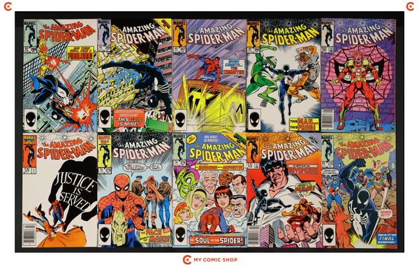 Issues 264, 266-270, 273N, 274, 276, 278N of Amazing Spider-Man (1963 1st Series). Most will grade in the VF- to VF+ range.