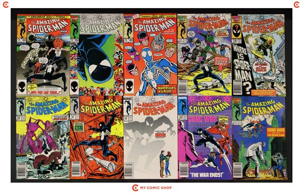Issues 310, 311, 313, 318, 319, 326, 327, 329-331 of Amazing Spider-Man (1963 1st Series). Most will grade in the VF- to VF+ range.