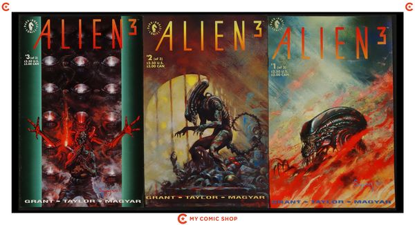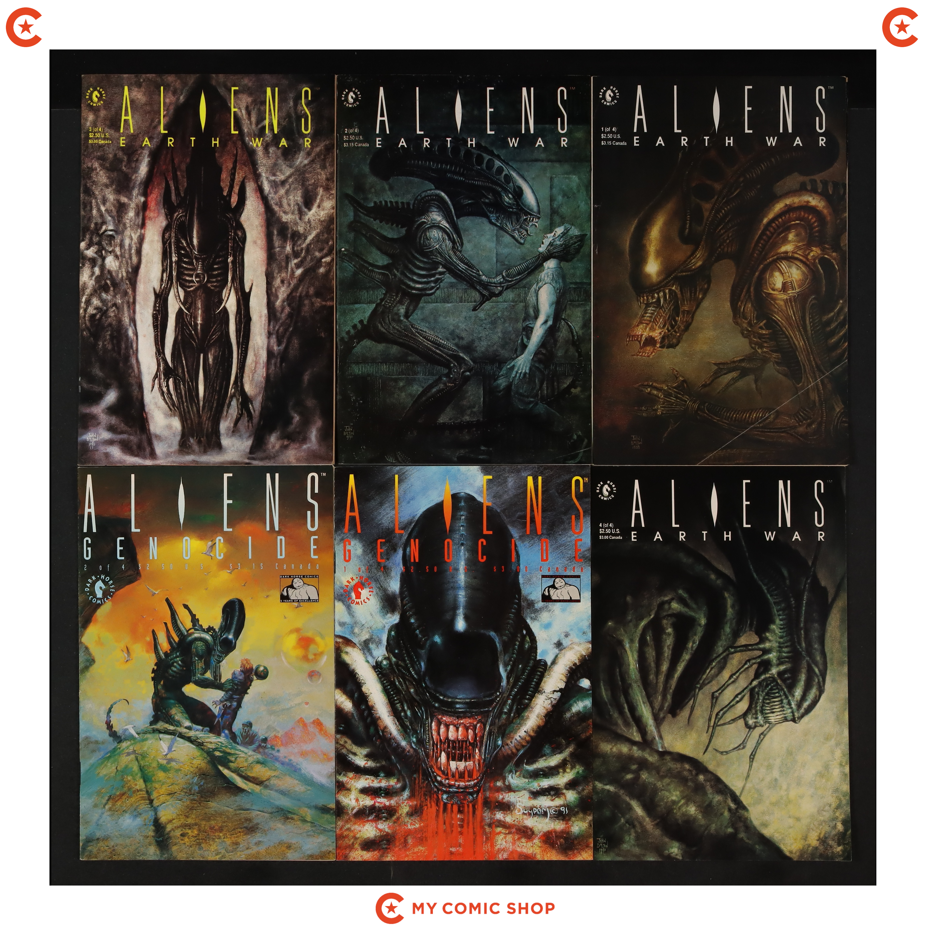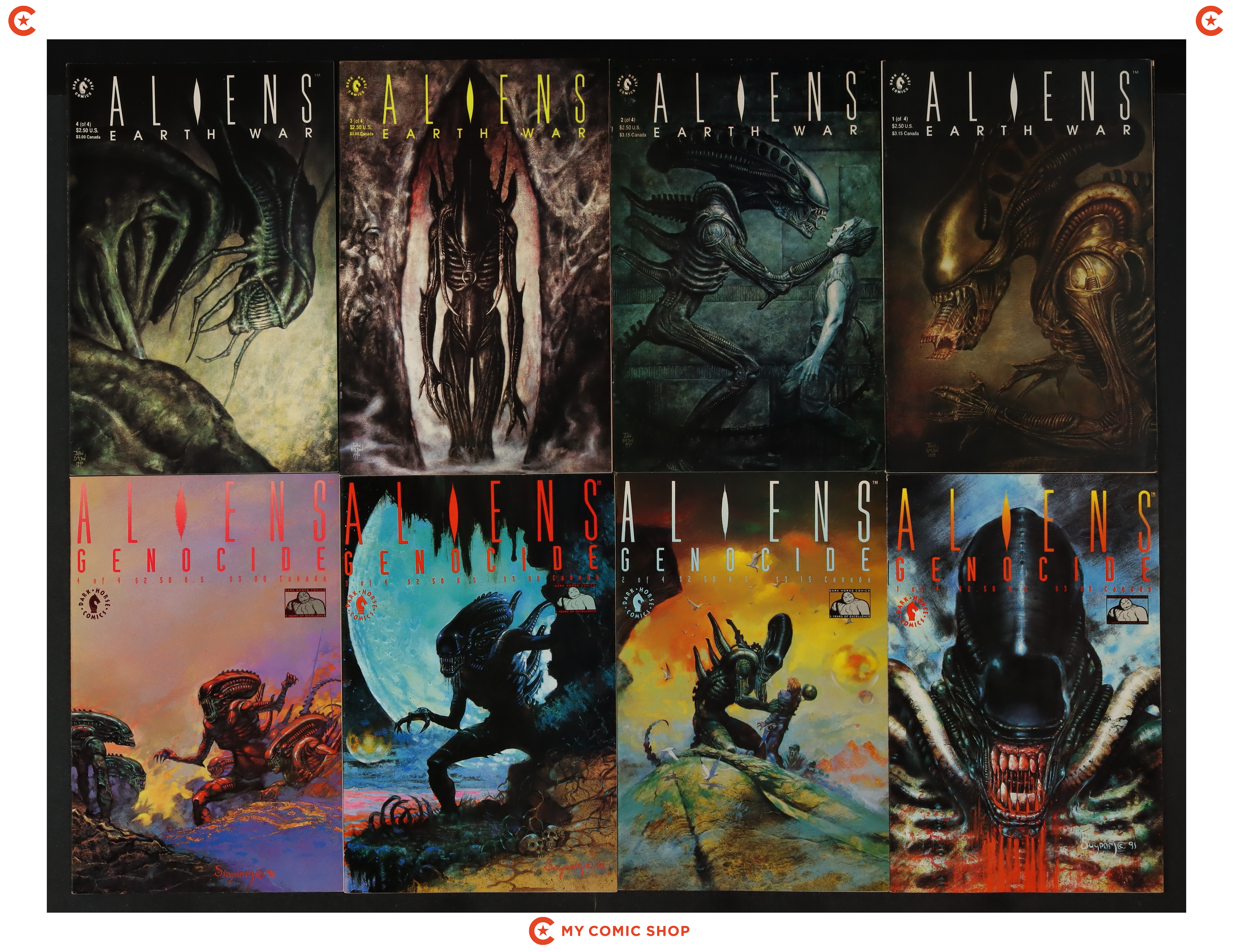 Issues 1-4 of Aliens Earth War (1990), issue 1-4 of Aliens Genocide (1991), and issues 1-3 of Alien 3 Movie Adaptation (1992). Most will grade in the FN to VF range.