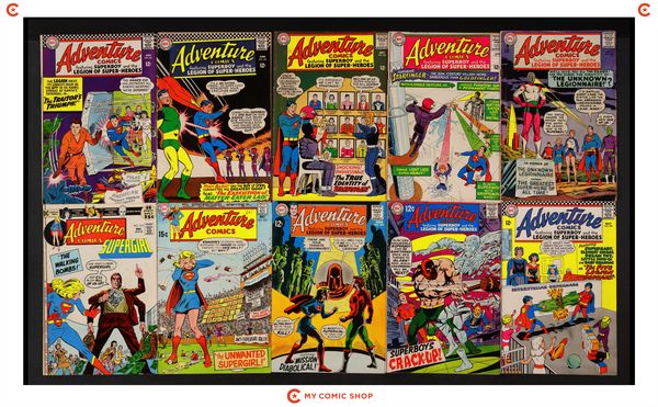 Issues 389, 442, 479-484 of Adventure Comics (1938 1st Series). Most will grade in the GD/VG to FN+ range.